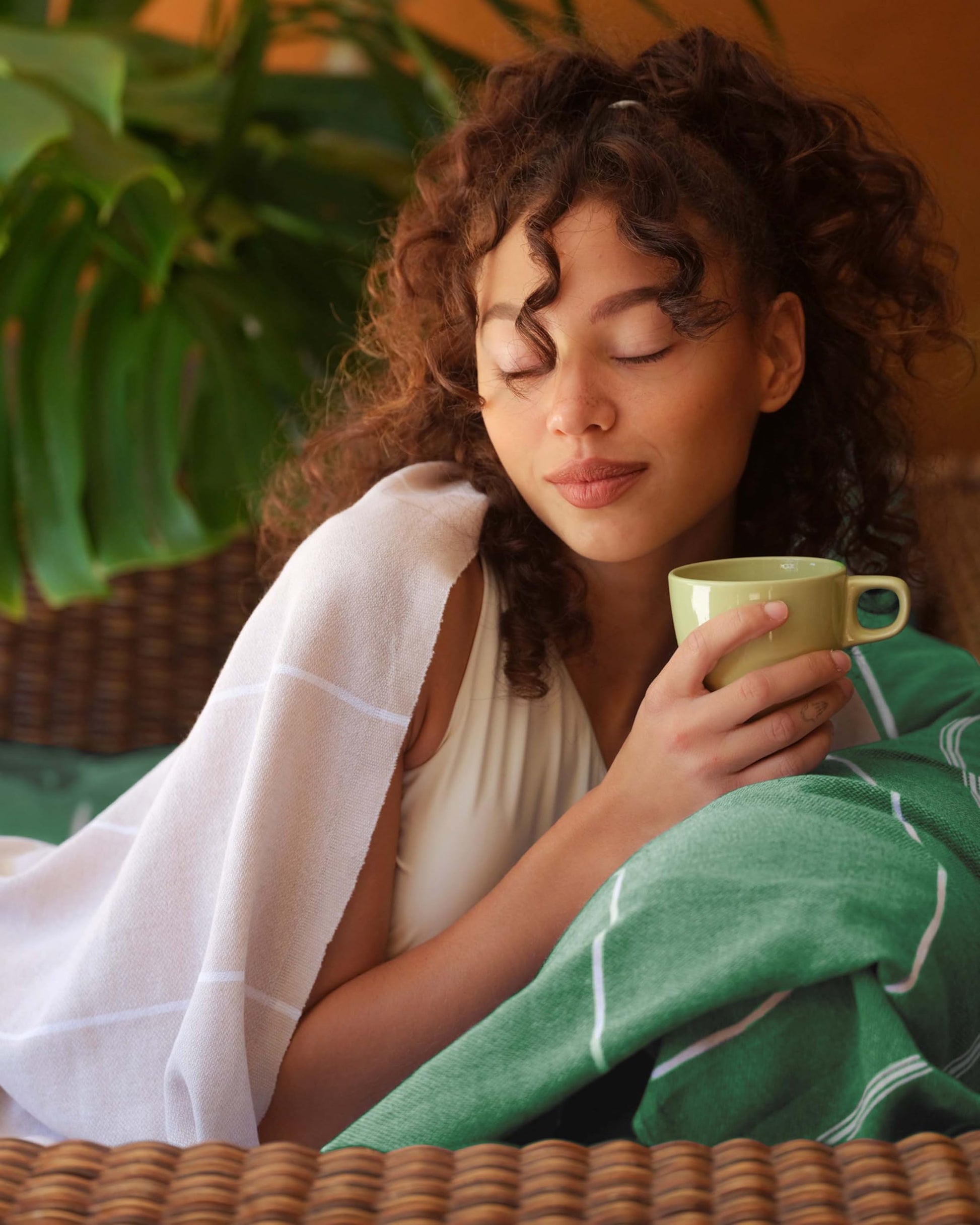 Fit-Flip Turkish peshtemal made of 100% cotton - absorbent and fast drying - perfect for sauna, beach, shower, bath, yoga - Green - 200x200cm Sultan