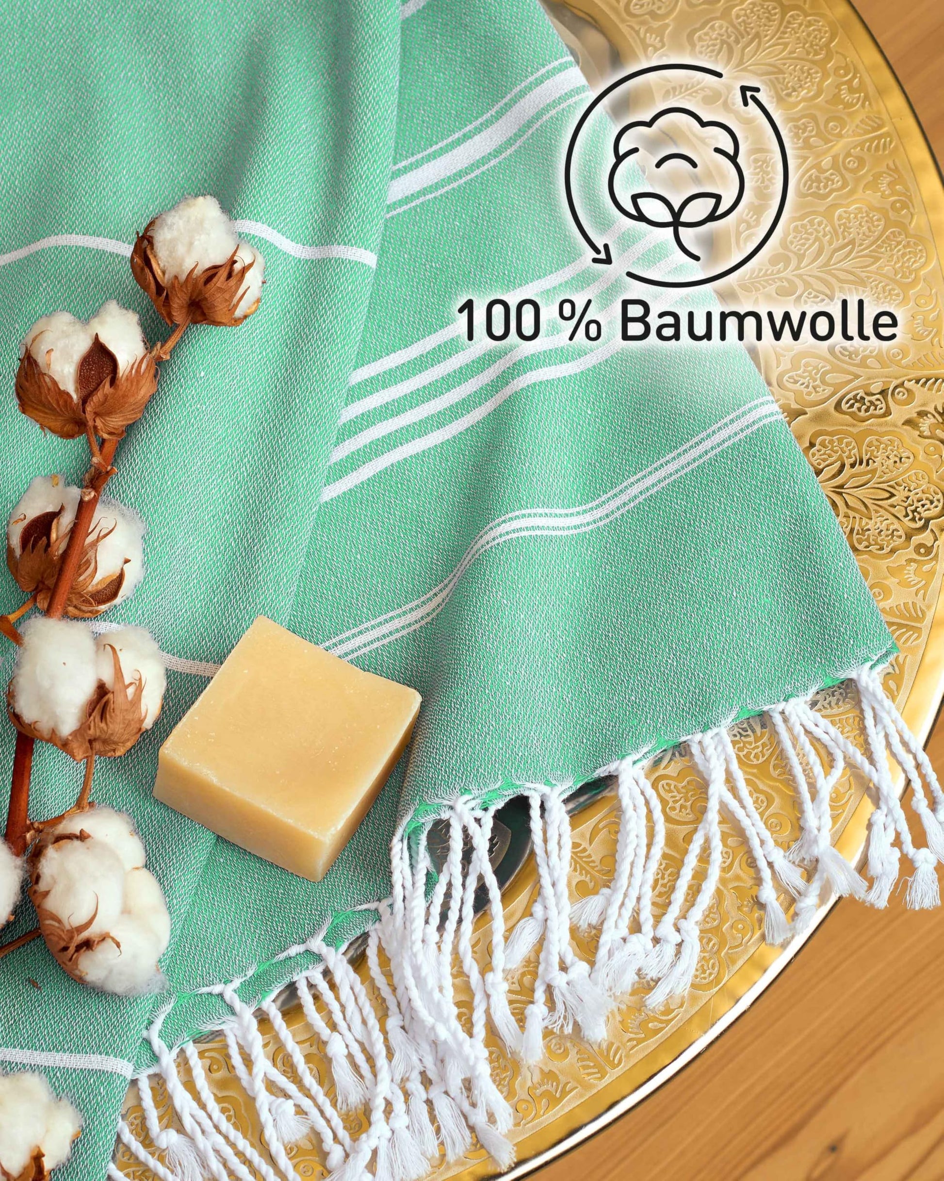 ["♻ SHORT WAYS, HIGH QUALITY – Our Hammam towel is made in Turkey from 100% pure cotton. Thanks to local production, the ways are short – for more quality and less strain on the environment.","♻ COMPACT & LIGHTWEIGHT – Our sauna towels are ideal for on the go, require less space than regular towels, and can be easily stored in any backpack, sports or travel bag.","♻ ABSORBENT & QUICK-DRYING – Due to the special weaving technique, our Hamam towels absorb just as much moisture as conventional terry towels, but are much lighter and dry super fast.","♻ VERSATILITY – Our extra-large Hamam towels are as practical as a lightweight beach towel as they are as a sauna towel, travel towel, bath towel, or quick beach dress. At home, you can also set accents with your Kelim cloth.","♻ TESTED MATERIAL QUALITY – Our beach towels made of 100% cotton are certified according to Oeko-Tex Standard 100. Our towels are carefully prewashed and leave a gentle and soft skin feeling. The easy-care Hamam towels are washable up to 40°C.","♻ 100% SATISFACTION – Our Fit-Flip Fouta towels are lovingly made of the highest quality. If something still doesn't fit, we will quickly find a common solution."]