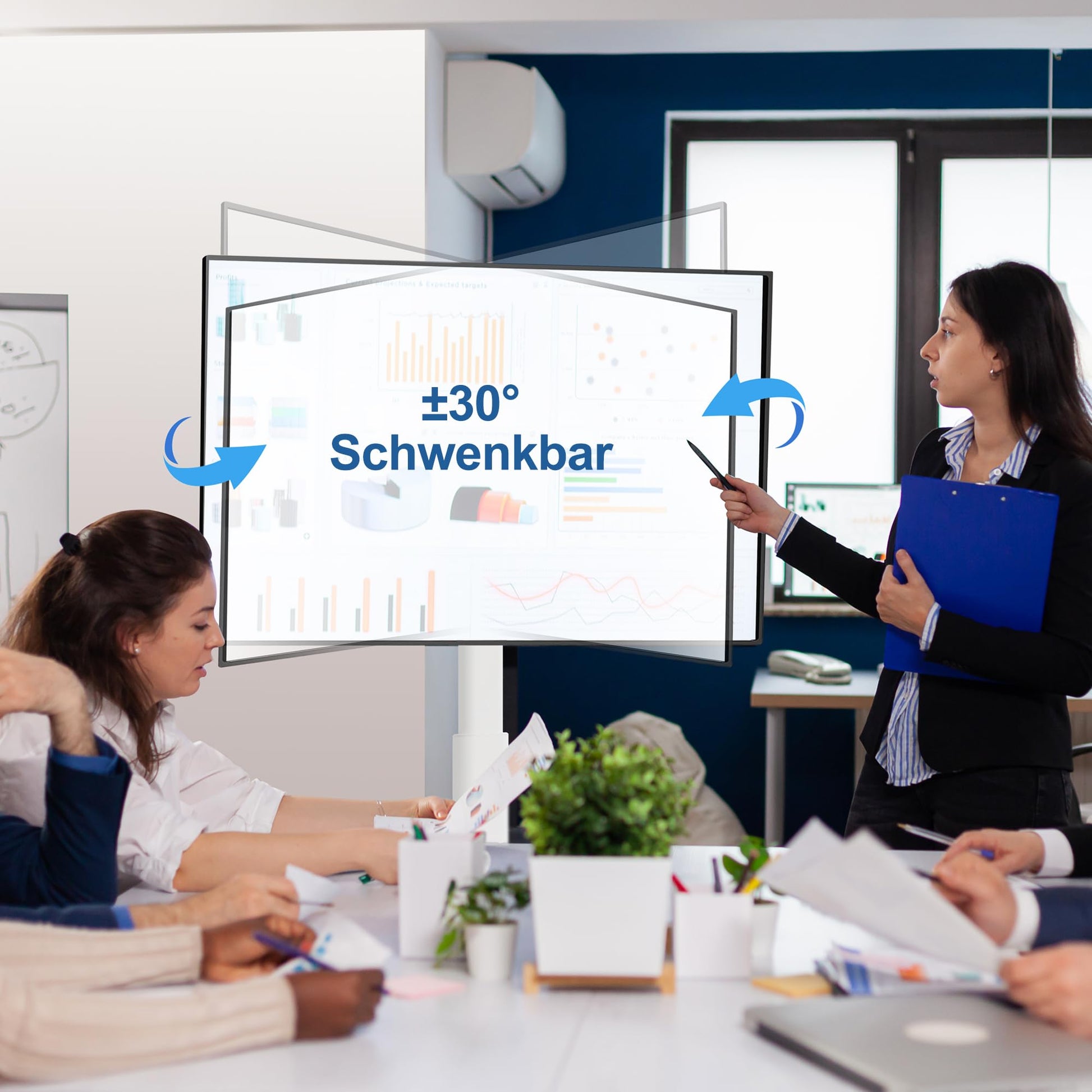 ["【UNIVERSAL and COMPATIBLE】Suitable for TV sets, PC monitors with screen diagonals 32-70 inches up to 88 lbs. VESA models 200*200-400*600. Compatible with most TV brands.","【ADJUSTABLE and SWIVEL】6 height levels from 50 inches to 58 inches through 2 types of height adjustment. Viewing angle can be swiveled 30 degrees left or right.","【PRACTICAL and STABLE】Thanks to furniture wheels, the TV stand can be rolled in the room. 20mm wooden base plate provides a stable and durable support. Anti-fingerprint and NOT fragile. Hi-Fi devices like DVD player and receiver can be placed on the plate.","【NEAT and STYLISH】With the plastic ring, the cables can be neatly organized. Unique red-black design gives your home or conference room a modern chic look.","【EASY ASSEMBLY】All necessary hardware and installation instructions are included. No need to drill into the wall.","The wood used for the base assembly is FSC certified."]
