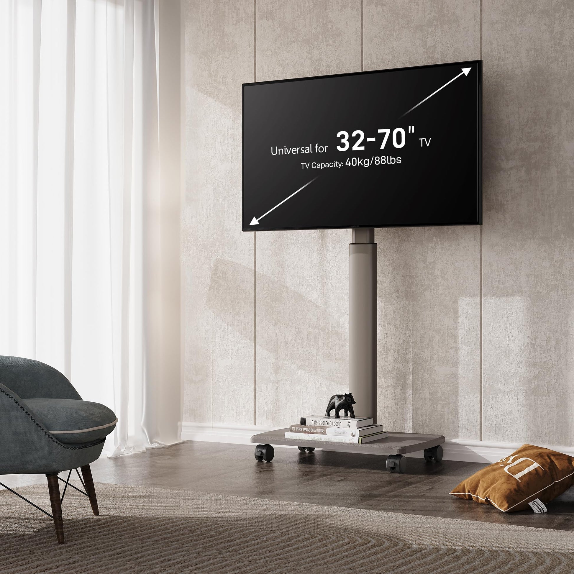 ["【Universal and Compatible】Suitable for TV sets, PC monitors with screen diagonals 32-70 inches up to 40kg. VESA models 200*200-400*600. Compatible with most TV brands.","【Adjustable and Swivel】6 height levels from 1270mm to 1470mm through 2 types of height adjustment. Viewing angle swivels 30 degrees left or right.","【Convenient and Stable】Thanks to furniture casters, the TV stand can be rolled around the room. 20mm wooden base plate provides a stable and durable support. Anti-fingerprint and NOT fragile. HiFi devices like DVD players and receivers can be placed on the plate.","【Neat and Stylish】The plastic ring allows cables to be neatly organized. Unique red-black design gives your home or conference room a modern chic look.","【Easy Assembly】All necessary hardware and installation instructions are included. No need to drill into the wall.","The wood used for the base assembly is FSC certified."]