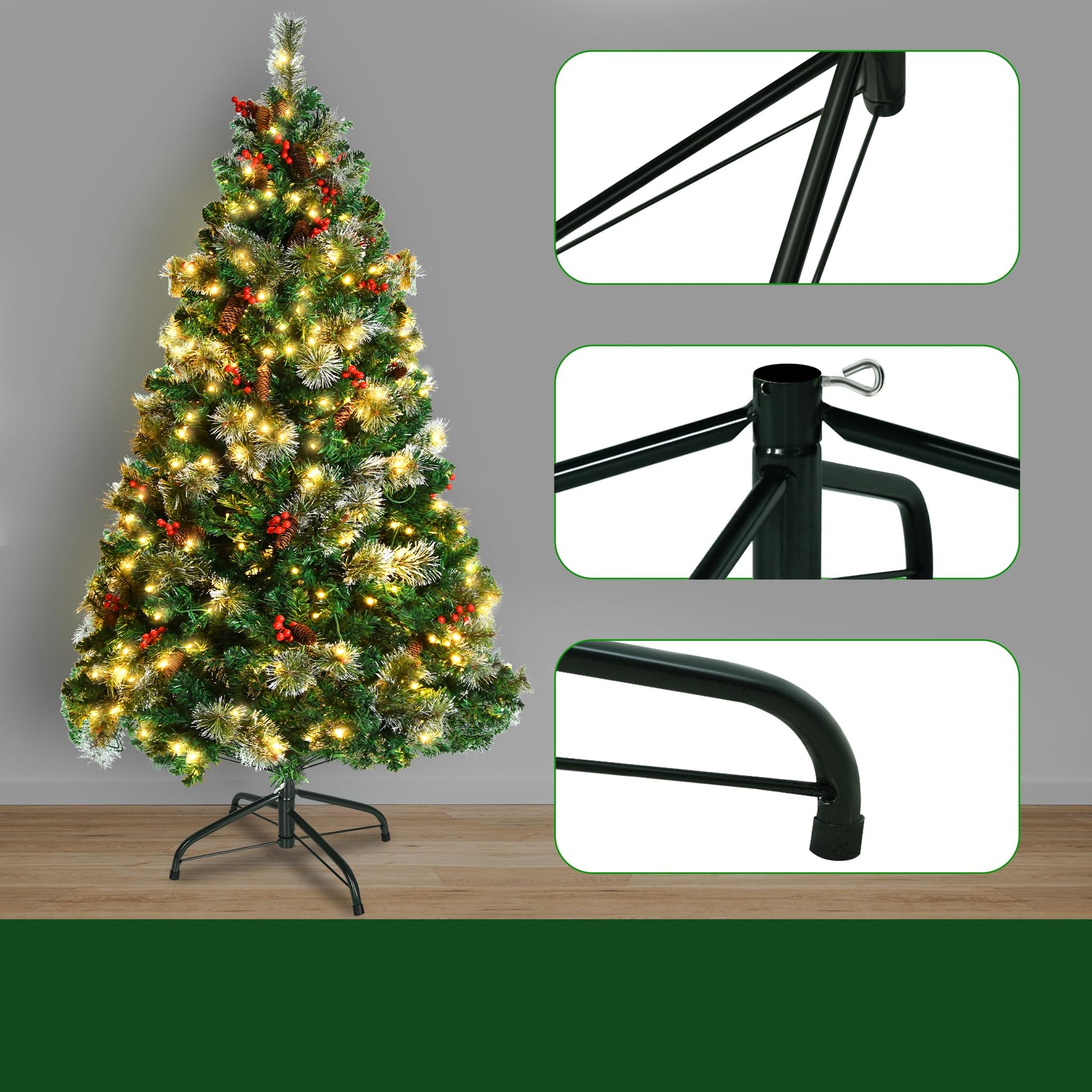 FIVMEN Artificial Christmas Tree with Lights 120 cm PVC Faux Christmas Tree with 180 LEDs and Stand Fake Christmas Trees Christmas Decorations, with Pine Cones and Berries
