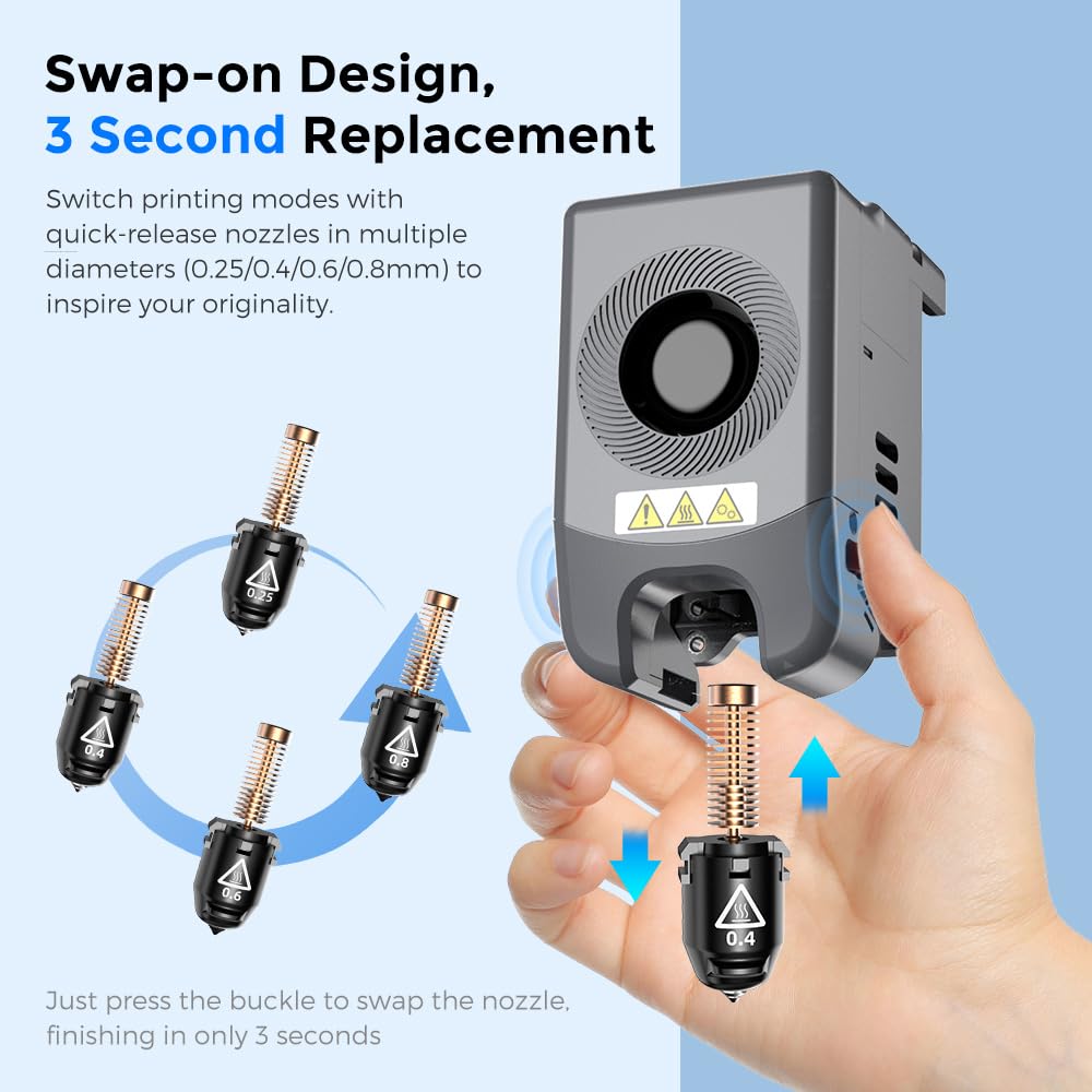 FLASHFORGE Adventurer 5M nozzle assembly, 32mm³/s high flow rate, 35 second quick heating to 200℃, 3 second quick detachable nozzle, 3D printer hardened steel nozzle parts for AD5M/AD5M Pro (0.6mm).