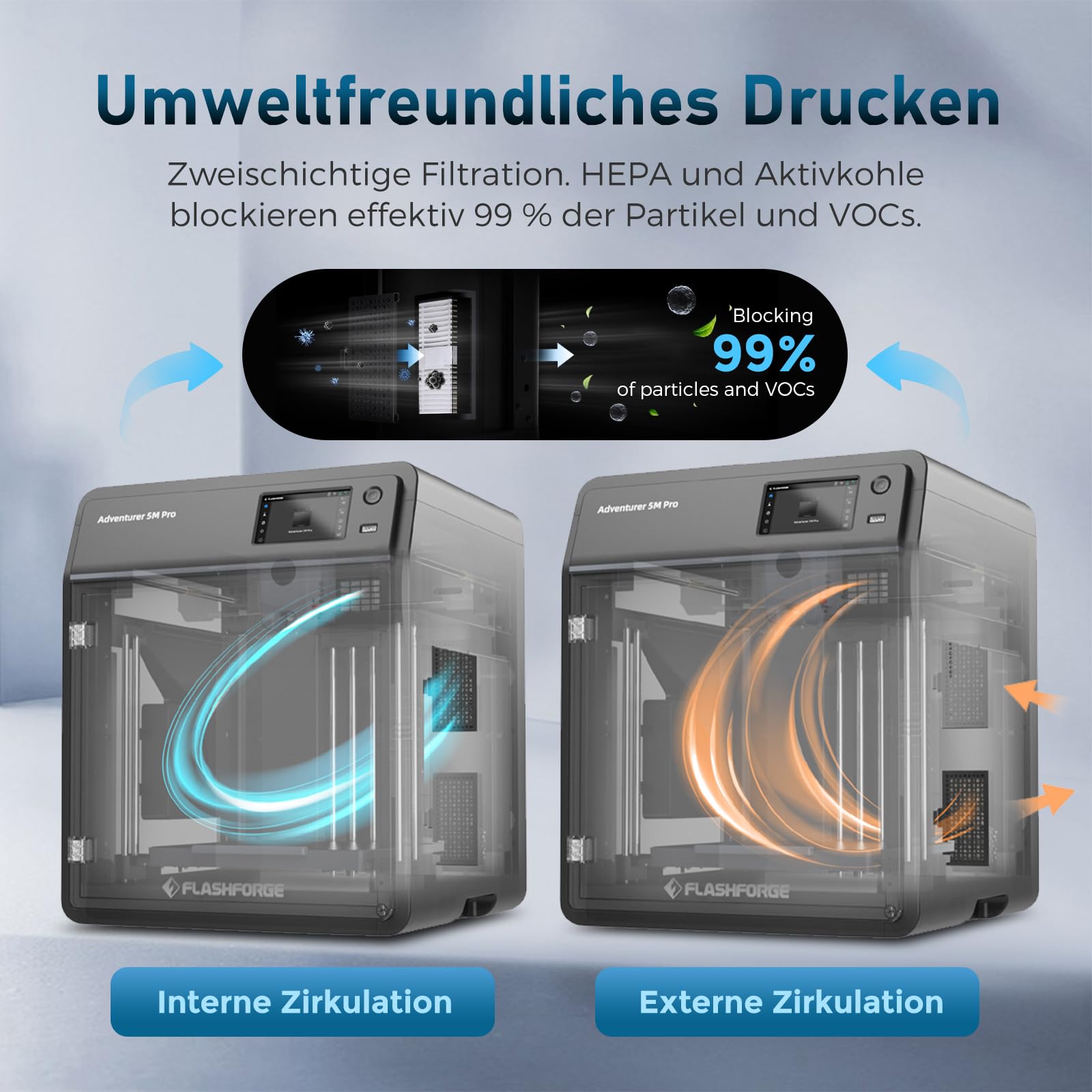 Flashforge Adventurer 5M Pro 600mm/s 3D printer with auto-calibration - Quick-change nozzle + PEI plate - 220x220x220mm build volume for model making/prototyping.
