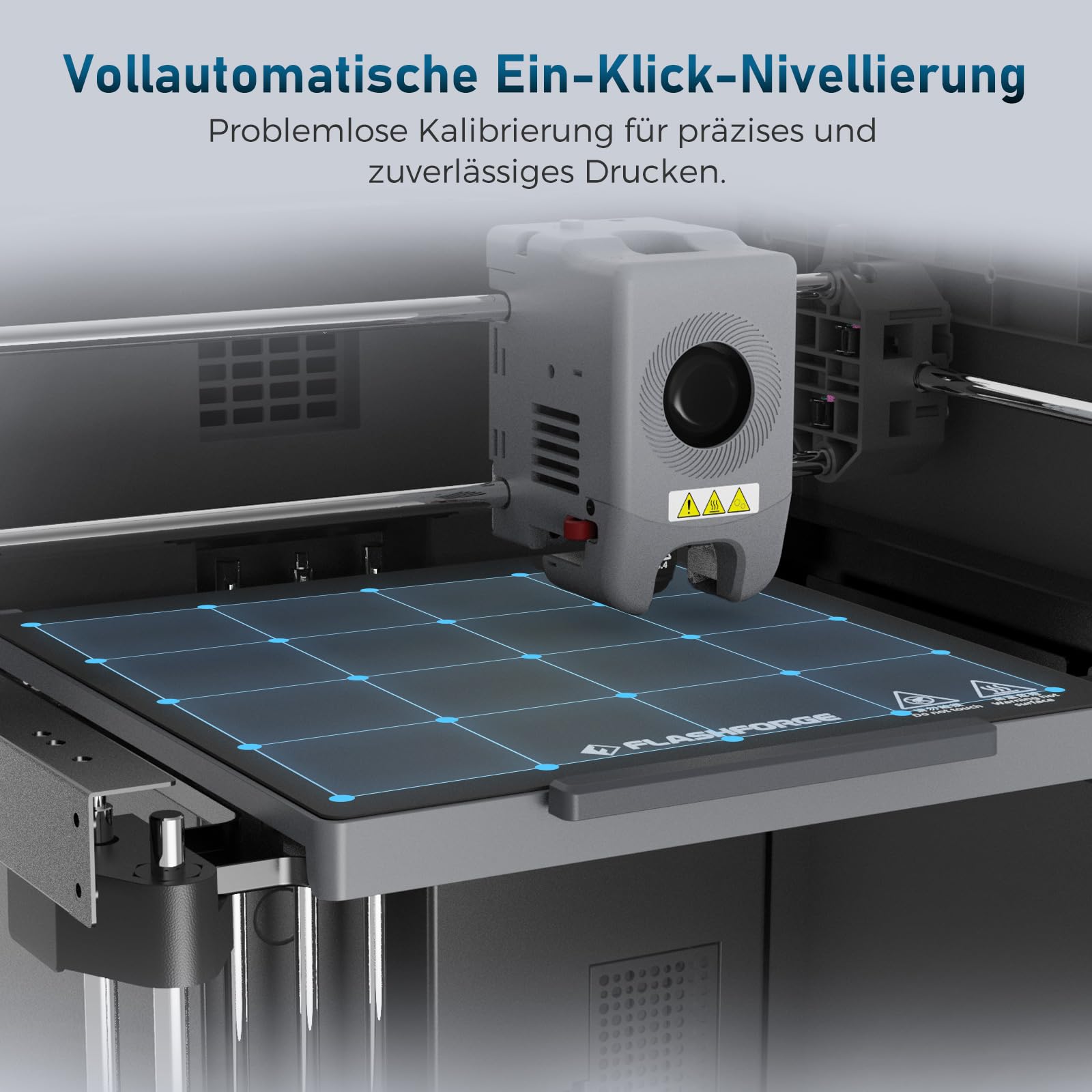 ["One-Click Fully Automatic Calibration. Professional Auto-Leveling Technology for precise printing results - The self-calibrating 3D printer system of the AD5M guarantees millimeter-accurate aligned print beds without manual readjustment. Perfect for beginners and professionals thanks to plug-and-play functionality.",