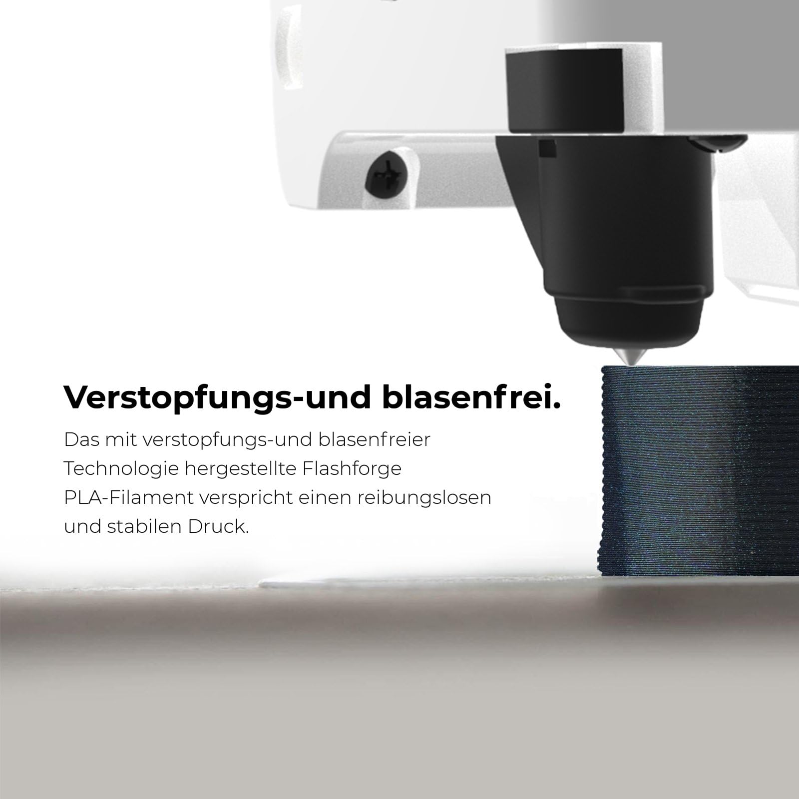 "Safe Printing. PLA filament is made from corn starch, which is odorless and harmless for classroom and family use. Unclog and bubble-free. Manufactured with unclogging and bubble-free technology, Flashforge filament promises smooth and stable printing. Fully dried for 24 hours before packaging and vacuum-sealed with desiccants in a transparent bag. Accuracy and clean winding. +/- 0.02mm accuracy and clean winding provide a guarantee for successful 3D printing. Printing tips Nozzle: 190-210˚C; Bed: 50-55˚C; Speed: <250mm/s. Spool parameters Spool diameter 20.0 cm, Spool width 6.5 cm, Spool hub hole diameter 5.3 cm. The size of the Flashforge filament spool is suitable for most 3D printers."