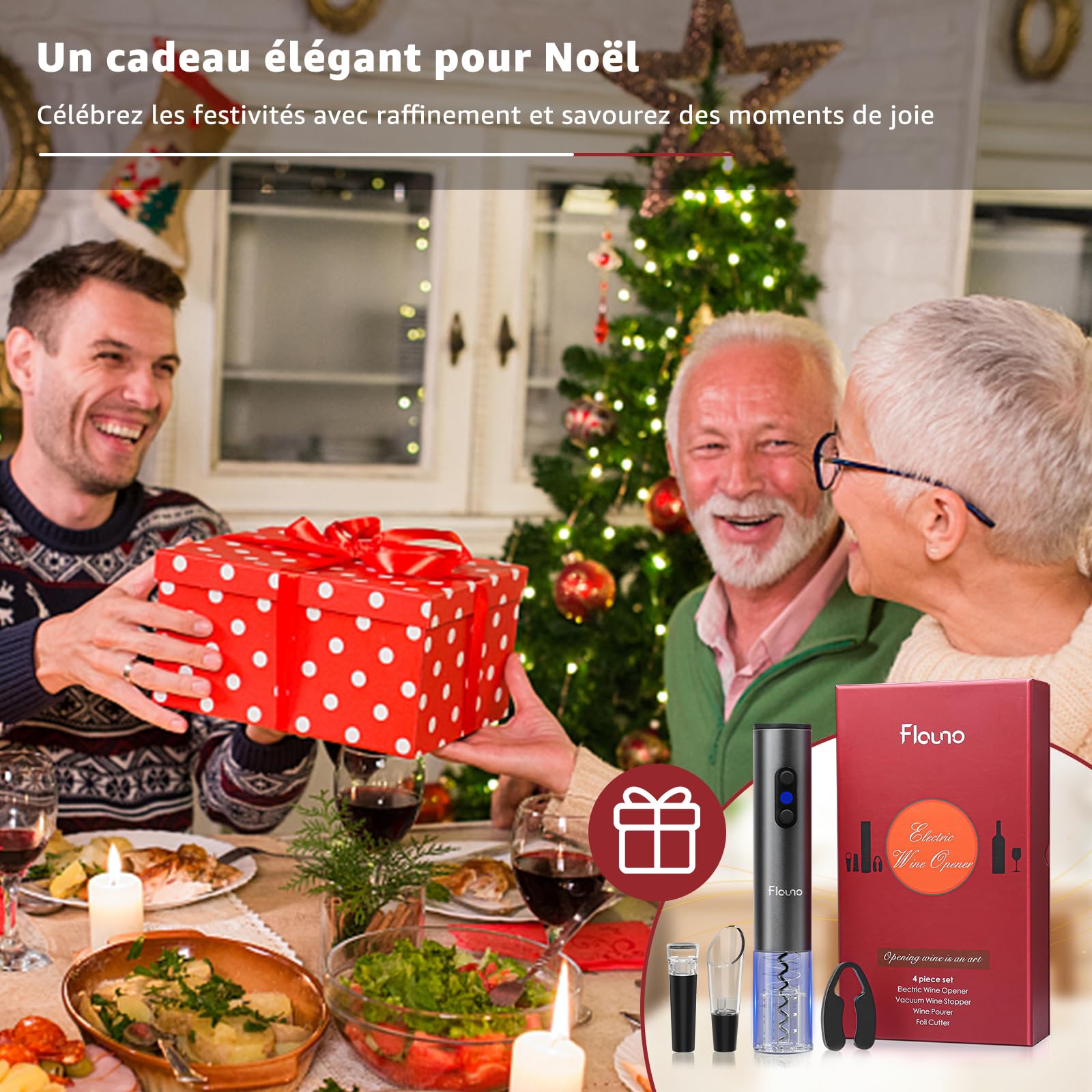 Flauno Electric Corkscrew Wine Set - Automatic Bottle Opener, Wine Foil Cutter, Decanter Spout with Aerator, and Vacuum Wine Stopper - The Perfect Gift for Wine Lovers