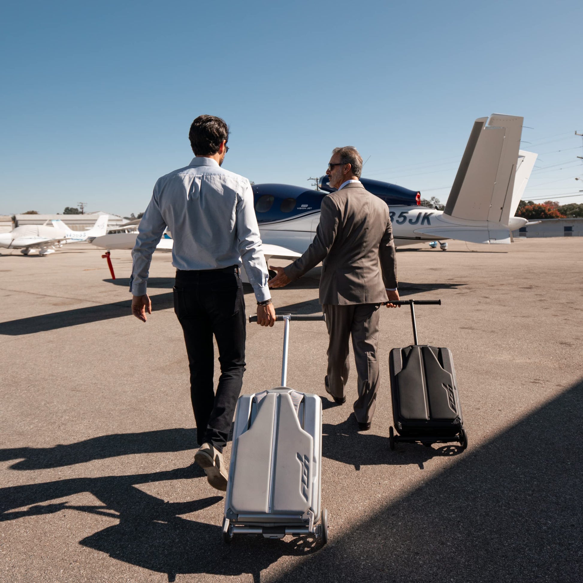 Flea - Transformable scooter adult + carry-on luggage case + backpack | Adult scooter + hard shell suitcase + messenger bag | Adult kick scooter | Foldable | Design made in Germany