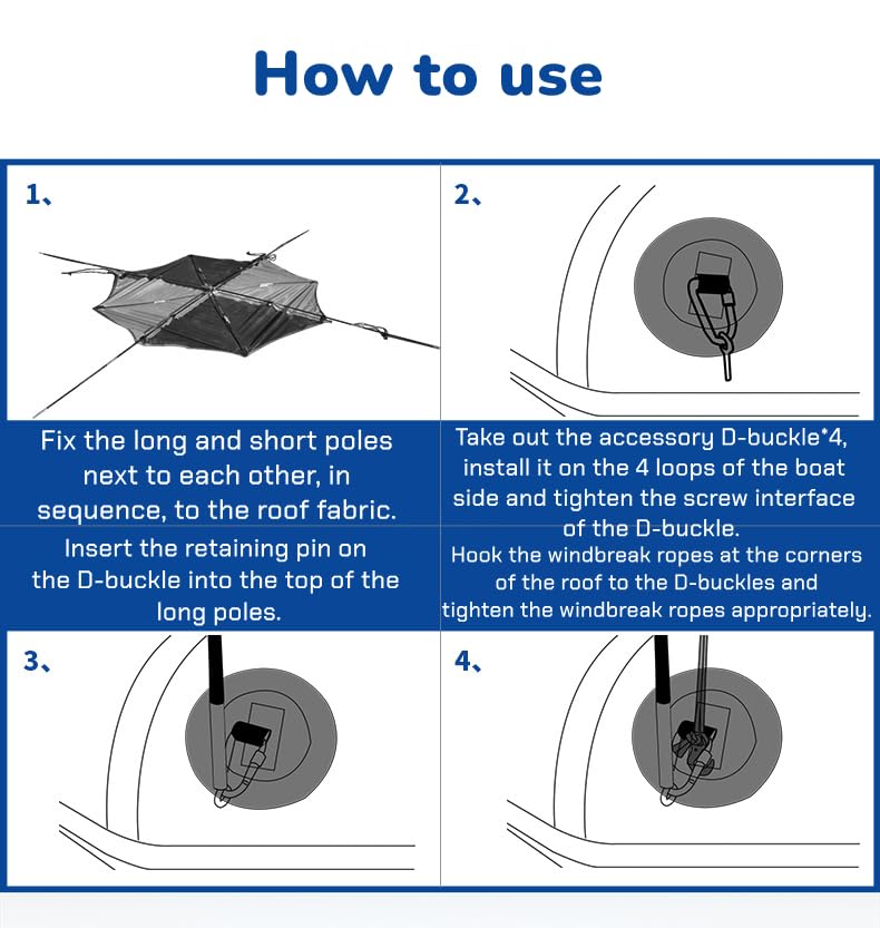 "ποΈ Versatile--can be attached to a raft, used as a sunshade on the boat, or you can use a nailed floor to build a very stylish fishing tent and awning. Easy to set up, saving time and effort without additional tools.