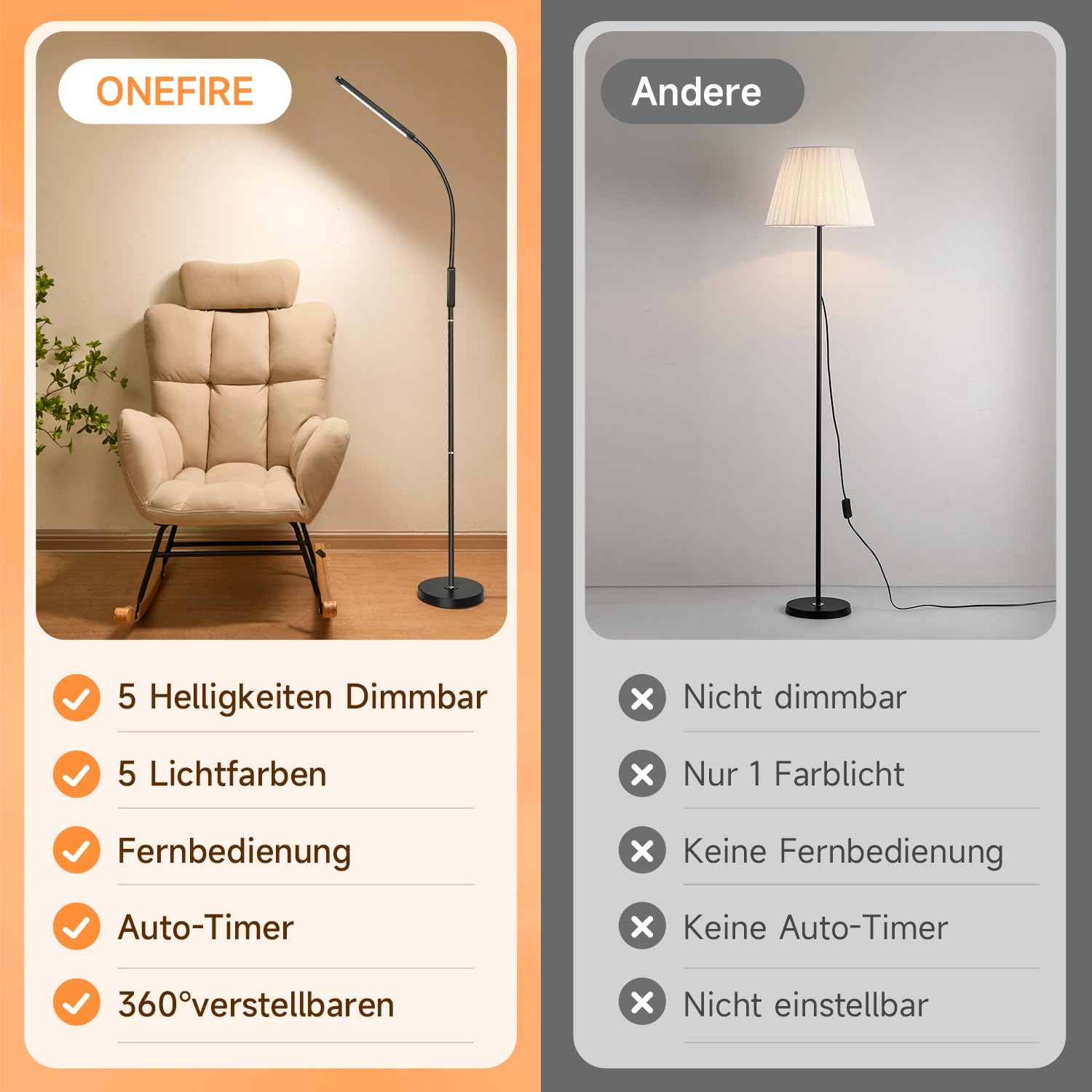 ["❤【Dimmable LED Floor Lamp with 5 Brightness Levels+5 Colors+Light Memory Function】The dimmable LED floor lamp for living room features 5 light colors (3000K–5000K) and 5 brightness levels, giving you 25 lighting modes as a dimmable reading lamp & LED floor lamp for living room. The reading lamp LED floor lamp with light memory function can return to the mode of last use. The black LED floor lamp, LED standing lamp, floor lamp, LED floor lamp meets all your lighting needs. The dimmable LED floor lamp is eye-friendly LED floor lamp for living room dimmable, reading lamp LED floor lamp dimmable, living room lamp floor lamp black, floor lamps.","❤【1000 Lumens Dimmable LED Floor Lamp for Living Room】1000LM reading lamp LED standing lamp provides flicker-free, glare-free lighting. Our eye-friendly living room lamp LED floor lamp dimmable is equipped with enhanced full spectrum LED lamp bead technology and exceeds most other 𝐂𝐑𝐈(Ra)<85 floor lamps. The living room lamp LED floor lamp dimmable has a color rendering index(𝐂𝐑𝐈(Ra)≥90). This professional, eye-care standing lamp, LED standing lamp for living room floor lamp provides soft, flicker-free & glare-free LED light for modern living room LED floor lamp, bedroom LED floor lamp & nursery LED floor lamp.","❤【LED Floor Lamp with Remote Control & Touch Control】Our reading lamp floor lamp with remote control is very functional. You don't have to leave the sofa or bed to control all the functions of this dimmable LED floor lamp for living room, as the remote control is very convenient. Dimmable LED floor lamp with touch sensor, switch the light mode through touch control. The LED floor lamp with remote control makes floor lamps a user-friendly reading lamp floor lamp dimmable, living room floor lamp dimmable, floor lamp, floor lamp, living room lamp LED standing lamp living room floor lamp black. Take the dimmable LED floor lamp for living room, reading lamp floor lamp dimmable home.","❤【LED Standing Lamp with Auto-Timer & Night Light Mode】The reading lamp LED standing lamp also features a 1/10-minute timer. When you set the AUTO timer, the floor lamp will automatically turn off to remind you that the reading/work time is over. Don't worry about the reading lamp floor lamp black, LED floor lamp bedroom keeping the light on, even if you accidentally fall asleep while reading at night. If you want to sleep in a not too dark bedroom, this reading lamp floor lamp dimmable with night light mode is also perfect for you. The LED floor lamp with warm light accompanies you to sleep.","❤【Dimmable Reading Lamp with 360° Adjustable Gooseneck】360° adjustable floor lamps provide you with a space-saving dimmable LED floor lamp for living room, reading lamp floor lamp dimmable, living room lamp LED standing lamp. Unlike traditional floor lamps, this dimmable floor lamp allows free adjustment of the lighting angle and helps you control the light in all directions and wherever you need it. The floor lamp with gooseneck can be easily adjusted and the light can make the area you need bright and provide enough light for working, studying or reading. Standing lamp with stable base is easy to use, very stable and safe.","❤【Easy Assembly Dimmable LED Floor Lamp for Living Room】Assembly was really easy. Take everything out of the box, quickly screw the rods together, and the LED floor lamp is ready to use. The base of the floor lamps is stable and ensures that nothing wobbles. It has undergone rigorous tilt tests and is designed to remain stable even when bumped by children or pets, which is secure and user-friendly. The slim body of the lamp can slide into tight corners, and its base fits under most beds and reading chairs, saving you a lot of space. Practical dimmable LED floor lamp for living room, reading lamp floor lamp dimmable, floor lamp, floor lamp.","💖【One Fire Reading Lamp LED Floor Lamp Dimmable WARRANTY】Our dimmable LED floor lamp for living room, reading lamp LED floor lamp black, LED standing lamp for living room LED floor lamp for living room, floor lamp comes with a 24-month warranty. All quality issues of our reading lamp LED floor lamp black, living room lamp floor lamp black, LED lamp living room floor lamp dimmable will be resolved with our good service. We spare no effort to provide high-end reading lamp LED floor lamp black, LED floor lamp for living room dimmable for customers. One Fire guarantees you professional dimmable LED floor lamp, daylight floor lamp, standing lamp.","❤【Dimmable LED Floor Lamp for Living Room with 5 Brightness Levels+5 Colors+Light Memory Function】The dimmable LED floor lamp for living room features 5 light colors (3000K–5000K) and 5 brightness levels, giving you 25 lighting modes as a dimmable reading lamp & black LED floor lamp. The reading lamp LED floor lamp with light memory function can return to the mode of last use. The black LED floor lamp, LED standing lamp, floor lamp, LED corner lamp meets all your lighting needs. The dimmable LED floor lamp is eye-friendly LED floor lamp for living room dimmable, reading lamp LED floor lamp dimmable, living room lamp floor lamp black, floor lamps.","❤【1000 Lumens Dimmable LED Floor Lamp for Living Room】1000LM reading lamp LED standing lamp, LED floor lamp black provides flicker-free, glare-free lighting. Our reading lamp floor lamp dimmable, floor lamp, LED corner lamp uses high-quality LEDs to emit flicker- and glare-free light, protecting your eyes effectively from discomfort and strain even after long hours of work or reading. The professional, eye-friendly standing lamp, LED standing lamp for living room LED dimmable provides soft, flicker-free & glare-free LED light for modern living room LED floor lamp, bedroom LED floor lamp & nursery LED floor lamp, small living room floor lamp black.","❤【Space-Saving Dimmable LED Floor Lamp for Living Room】Living room lamp floor lamp black is simpl