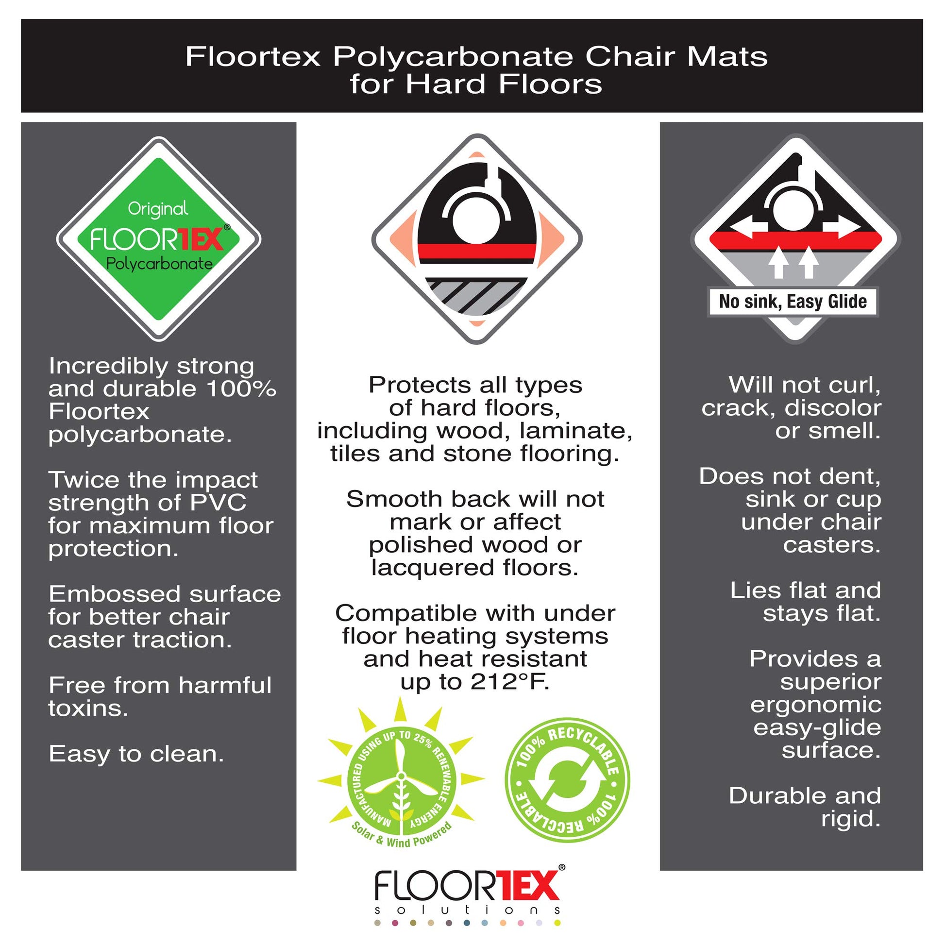 "Unique Original Floortex Polycarbonate formulation for maximum quality, transparency, and durability.",