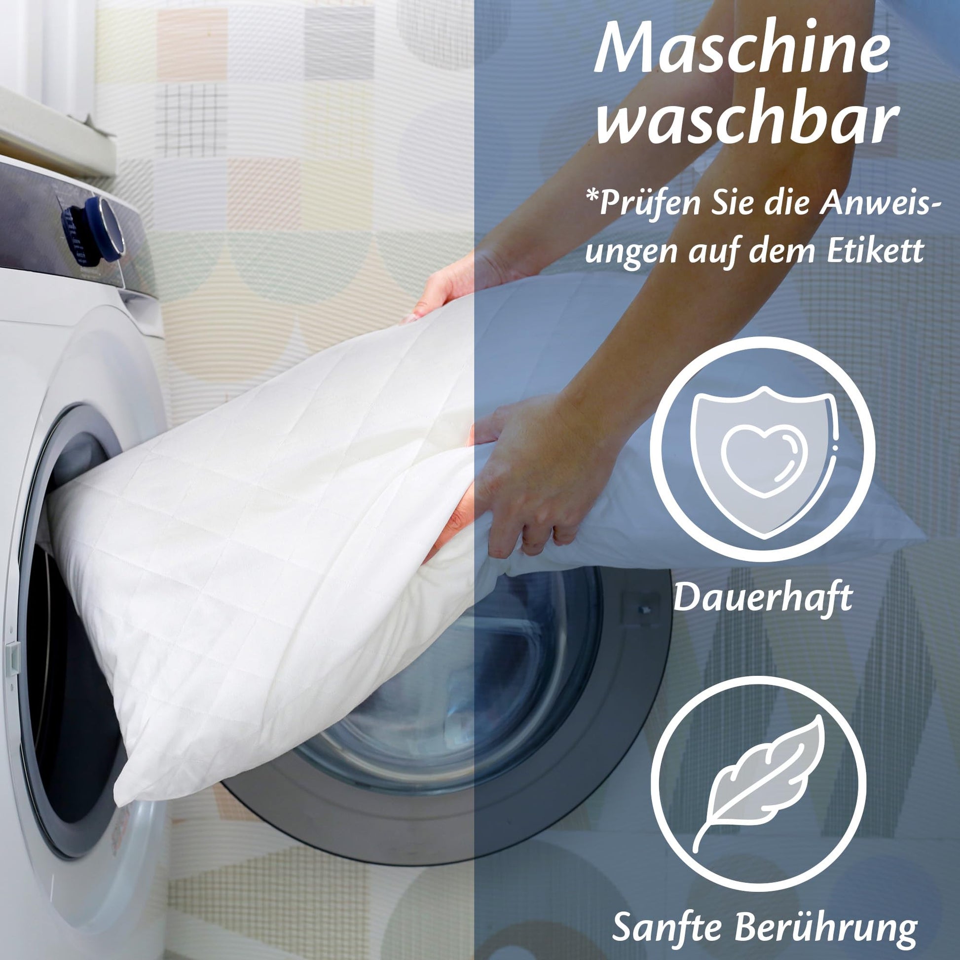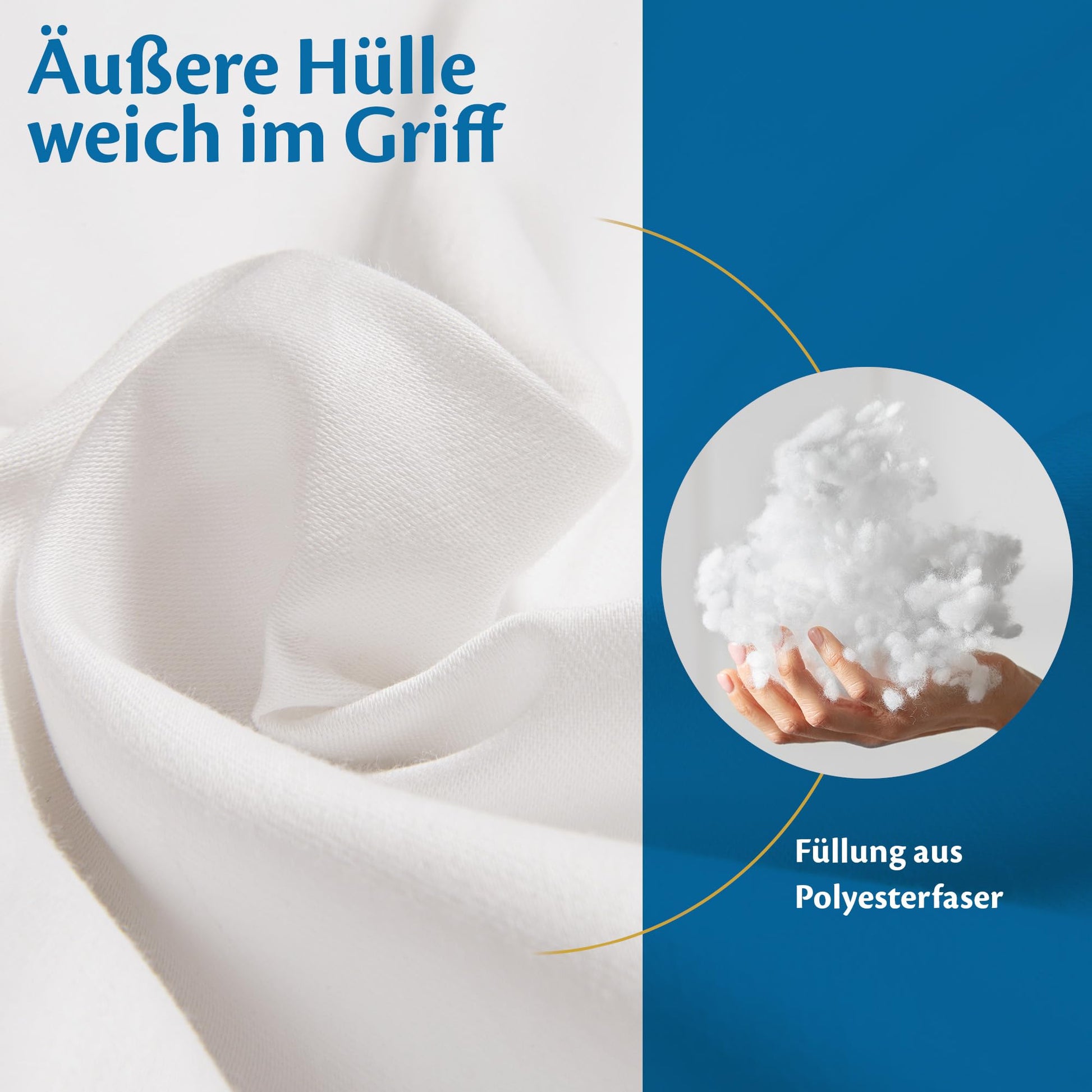 PREMIUM MATERIAL: The cover is made of soft microfiber, which guarantees hypoallergenic, dust mite-resistant, and breathable properties. The inner filling of polyester fibers ensures optimal air circulation and keeps the pillows firm and incredibly soft, providing unmatched relaxation.