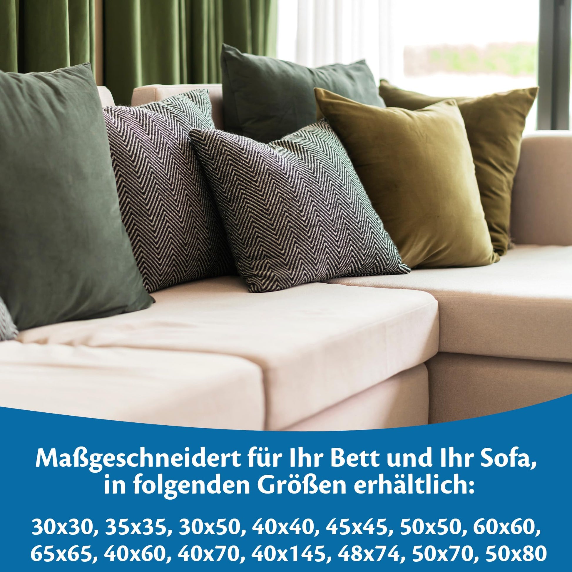 THE TAILORED SOLUTION FOR YOUR FURNITURE: The pillows are available in various sizes and quantities per set, perfectly matching your style. We have exactly what you need. Achieve optimal decor results and ensure a pleasant night's sleep. Available sizes: 30x30, 30x50, 35x35, 40x40, 40x60, 40x70, 40x80, 40x145, 45x45, 48x74, 50x50, 50x70, 50x80, 60x60, 65x65, and 80x80."