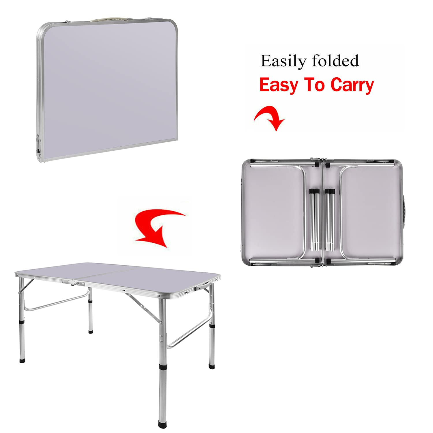 Folding camping table with adjustable height, portable, foldable, picnic tables for kitchen, dining room, garden, planting table, outdoor and indoor use, aluminum countertop, desk, 2 heights 67