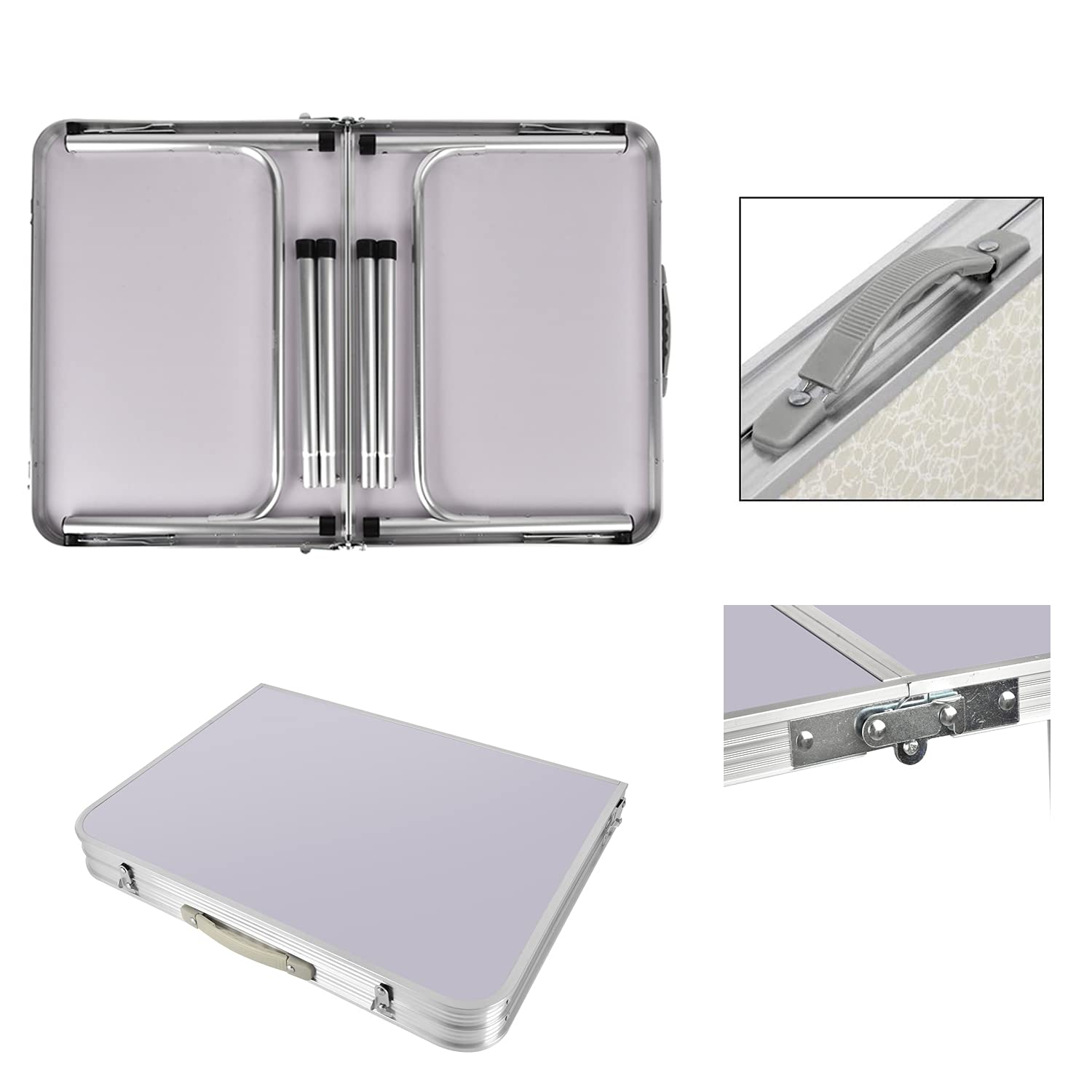 【Compact, portable, space-saving】: Surprisingly easy to assemble and folds neatly for storage. The legs fold into recessed cavities under the table. The folding table opens quite flat, opening and closing the table is easy and quick, it is quite strong despite the very lightweight materials. Our folding table also comes with a convenient and practical carrying handle for easy transport.