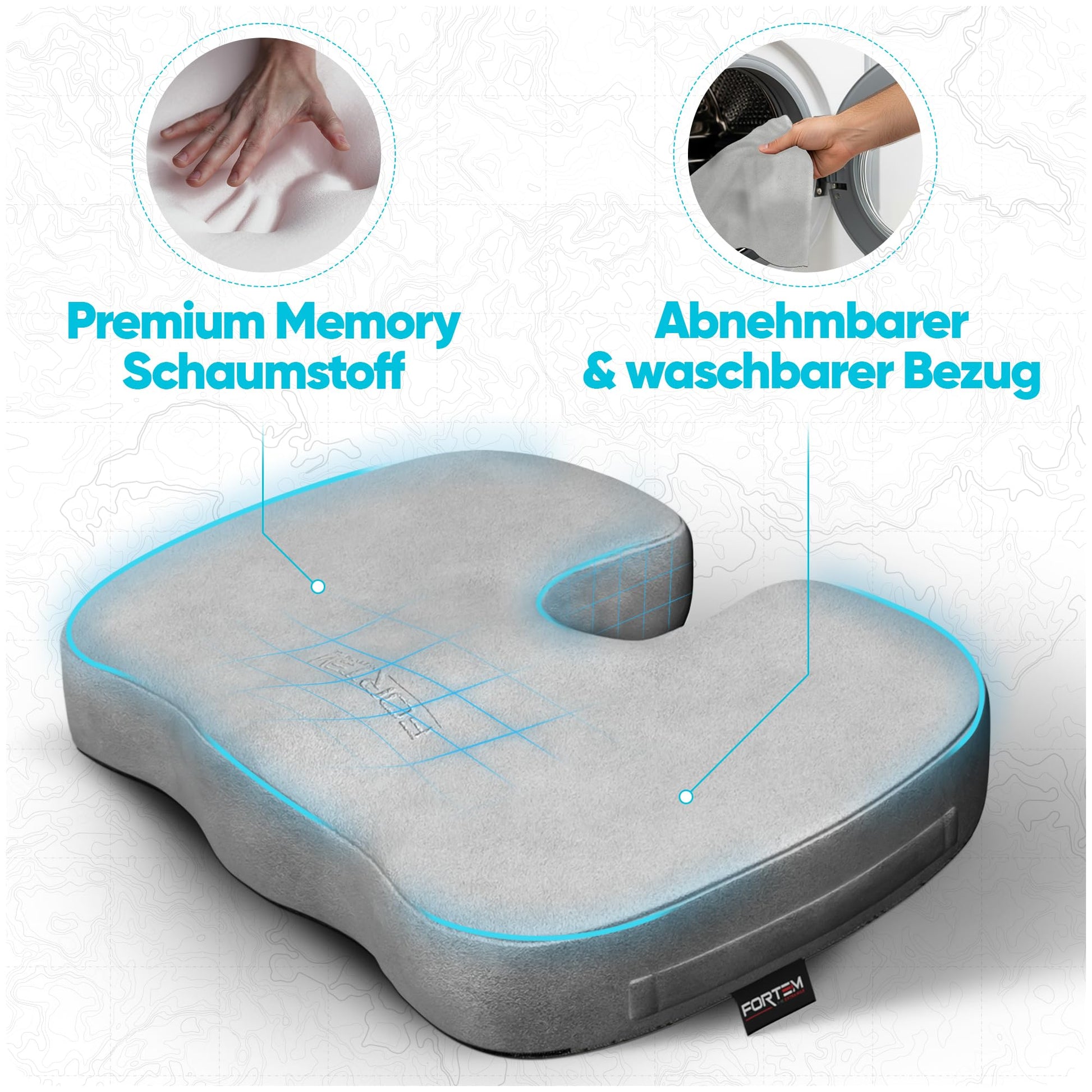 FORTEM Seat Cushion, Office Chair Cushion, Memory Foam Desk Chair Pillow, Non-Slip Gaming Seat Cushion, Car Seat Cushion, Computer Chair Cushion, Washable Cover