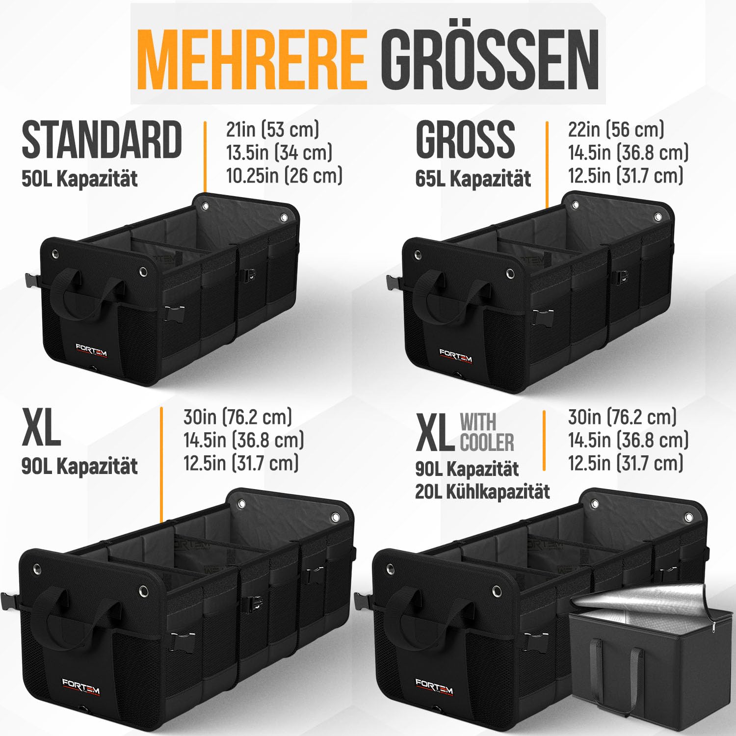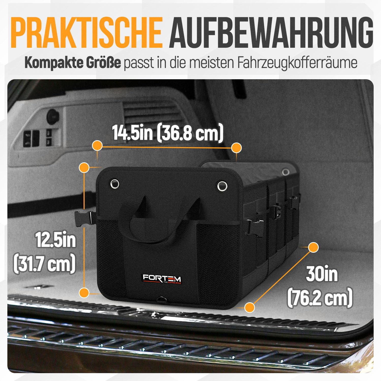 ["Robust box design - The premium car trunk organizer from Fortem is reinforced with sturdy bottom panels, so that each side wall is supported. Our trunk bag is the best among car organizer solutions and storage boxes with multiple side pockets and up to 3 compartments, so you can eliminate the chaos in the trunk. The bottom half of the organizer is also waterproof.",