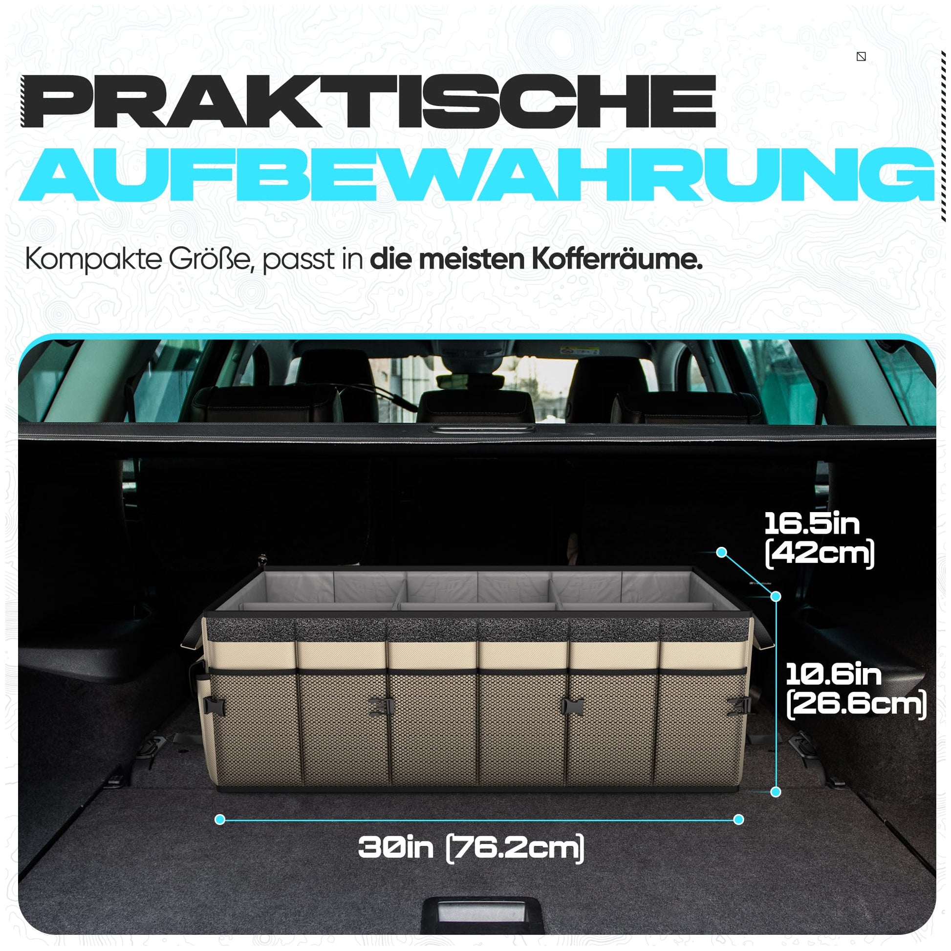 Stays firmly in place - Our organizer trunk box has non-slip strips to prevent slipping, as well as adjustable straps with metal hooks for attachment in your trunk. Store small items in the close-meshed side compartments or the flap pockets of the trunk bag car storage solution. You can even connect 2 or more of our trunk bags with interlocking buckles.