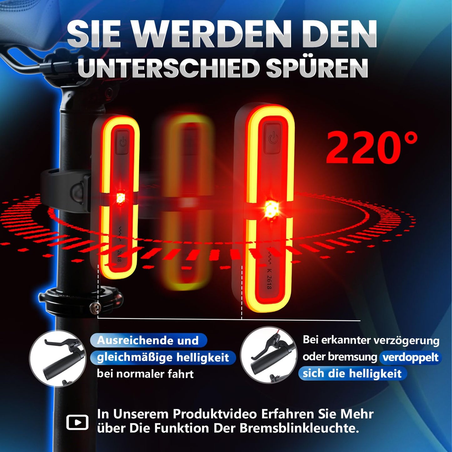 ["INTELLIGENT BRAKE DETECTION: The bike brake taillight has an improved deceleration sensor that is more sensitive. When braking, the taillight automatically switches to high-brightness mode, warning those behind you immediately to avoid rear-end accidents and improve driving safety."],