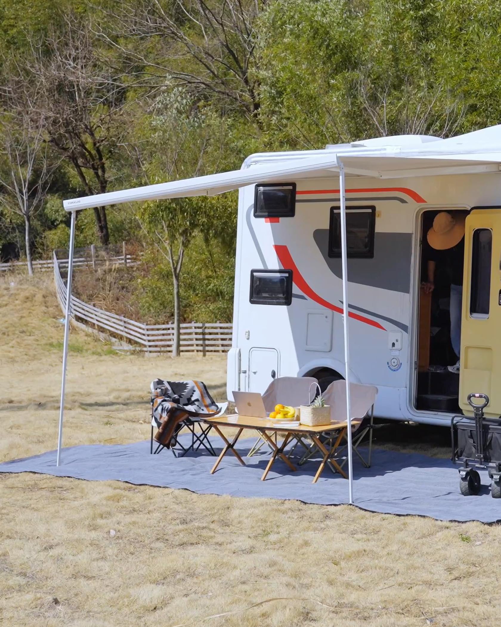 ["【Easy to carry】 The awning carpet is easy to fold and can be stored in a zippered carrying bag. So you can carry it around and travel with ease."