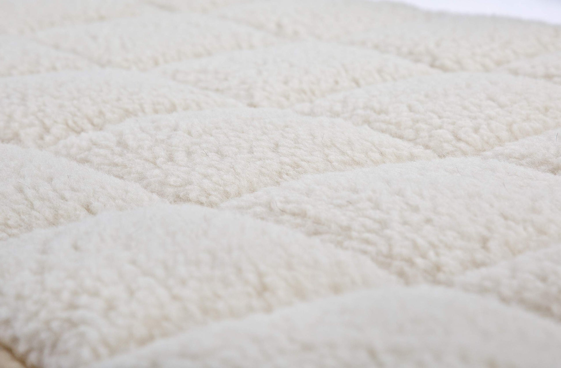 Top side: soft sheepskin, pure virgin wool - bottom side: 100% cotton - filling: 100% Merino virgin wool, filling weight: 32 oz.