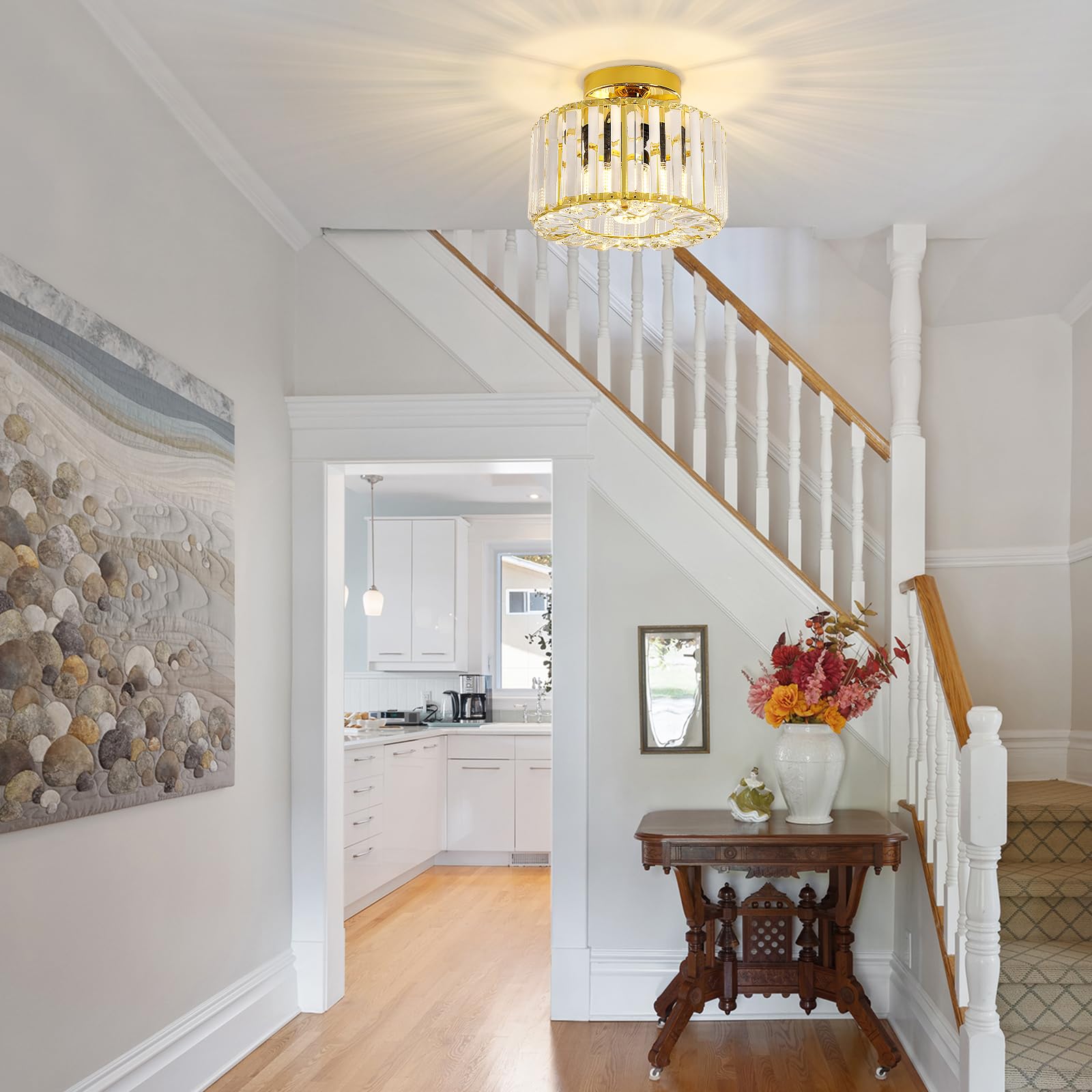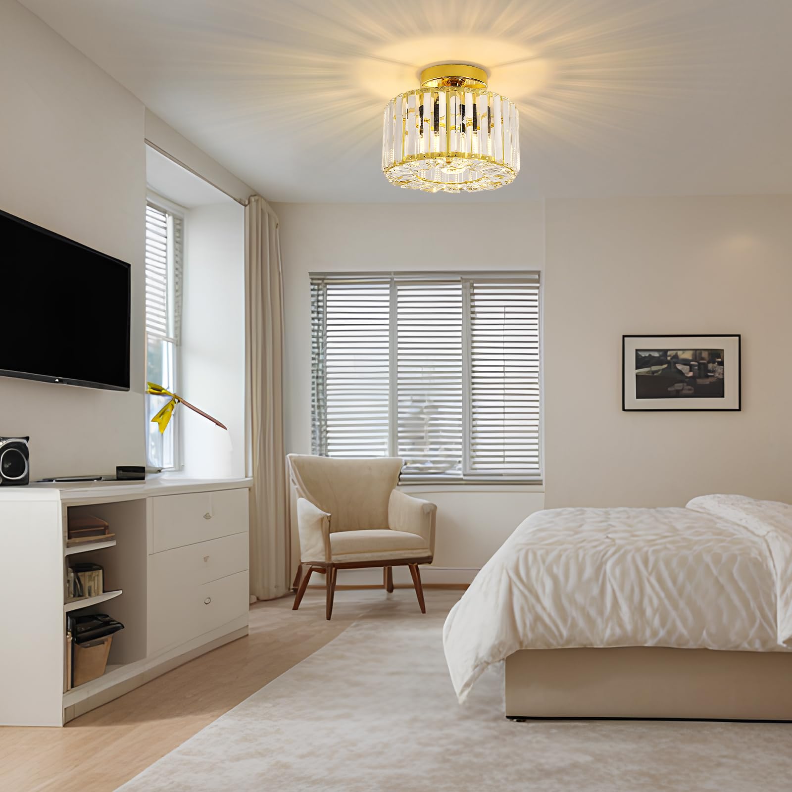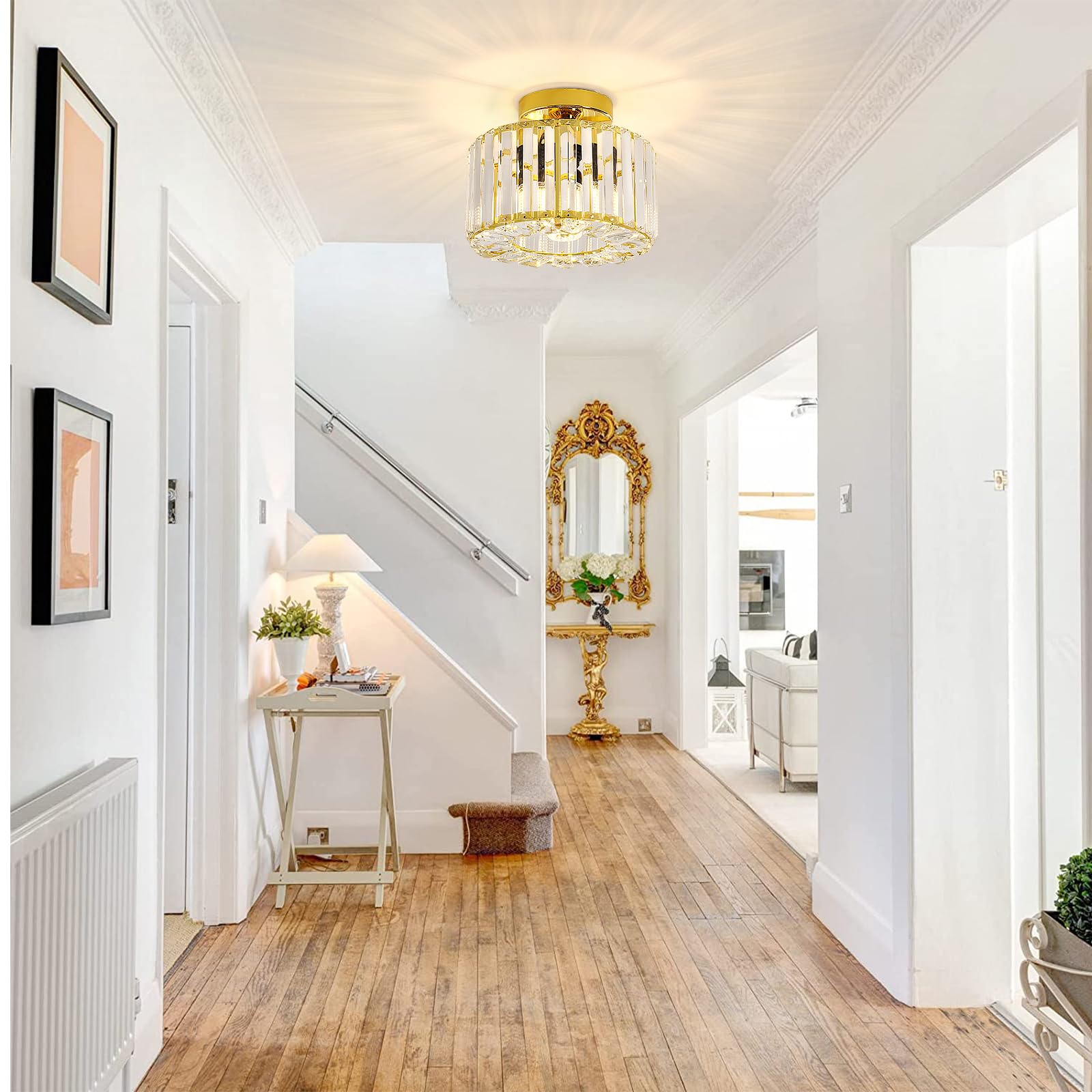 Wide application: crystal ceiling lights gold are a great modern decoration for your home. You can install them in the kitchen, living room, bathroom, bedroom, balcony, hallway, porch, cafe, dining room, hallway, foyer etc.",