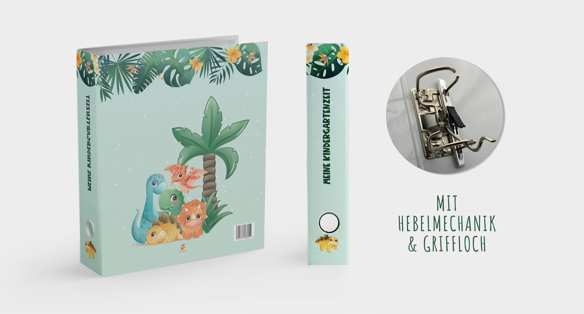 Friendly Fox Dino Binder for Kids, Memories of Kindergarten, My Kindergarten Time DIN A4 Folder for 350 sheets, spine width 5.6 cm
