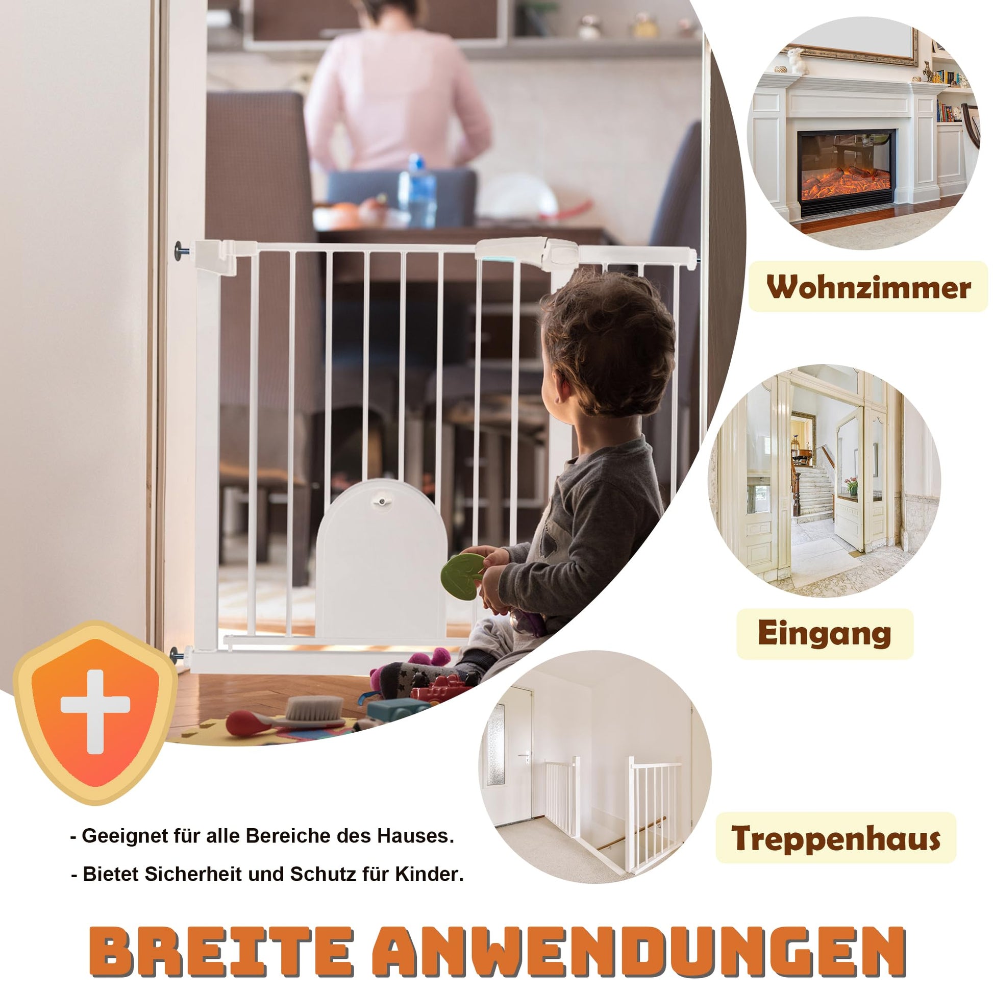 ["Increased Child Safety] The door safety gate is equipped with a safety lock at the top that requires simultaneous pressure on the top and bottom of the lock with hand to unlock it. This prevents babies from opening the gate on their own and provides maximum safety for your child.