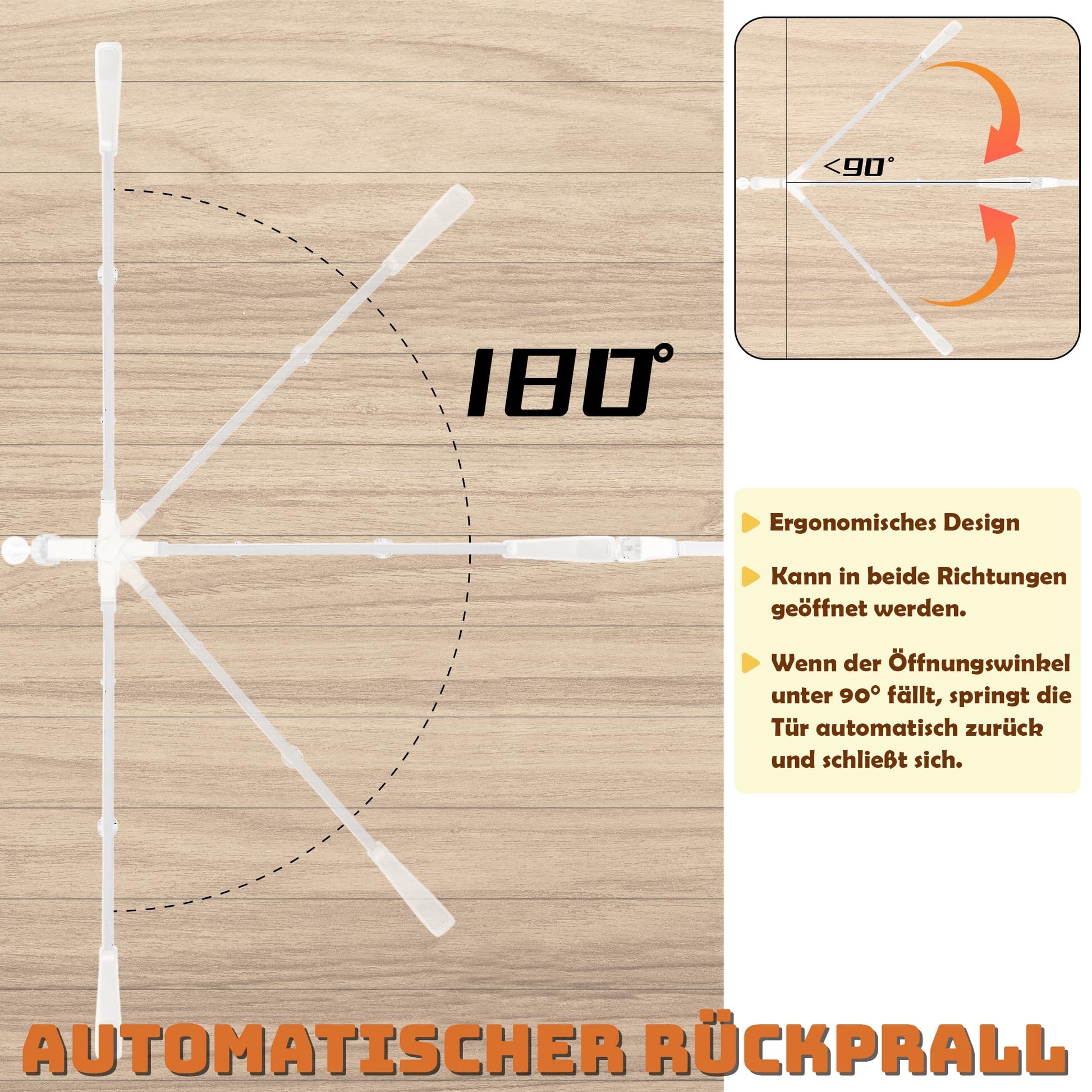 ["【Easy to Use] Our gates are ergonomically designed and can be opened in both directions, making them easy to operate with one hand. If the opening angle drops below 90°, the gate will automatically close, providing added convenience for busy parents.
