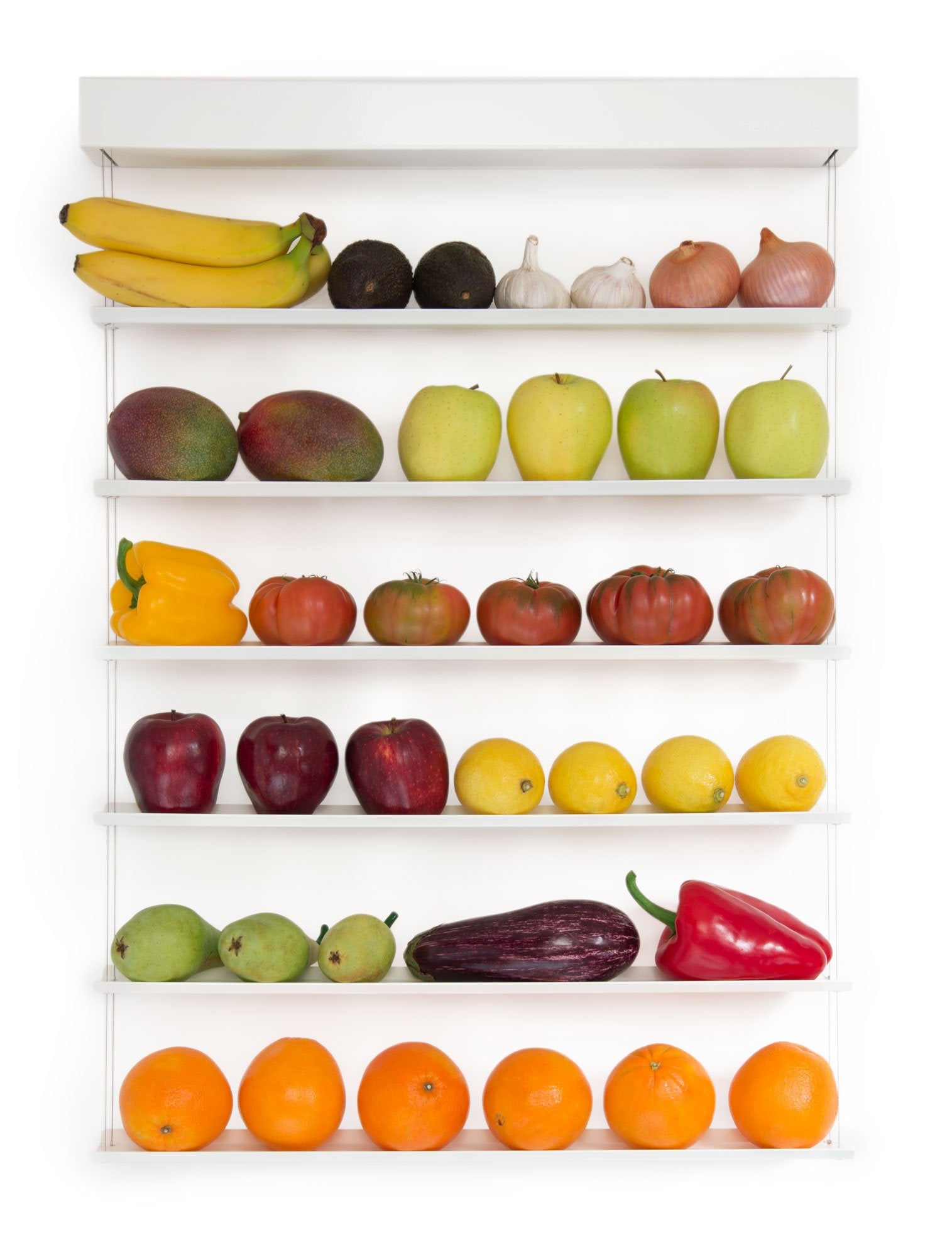 FRUITWALL - Hanging fruit rack I Fruit hanging basket I Fruit bowl design I Wall shelf for fruit & vegetables I Hanging shelf I Vegetable chandelier I Fruit storage wall I Kitchen wall shelf I 6 tiers - White