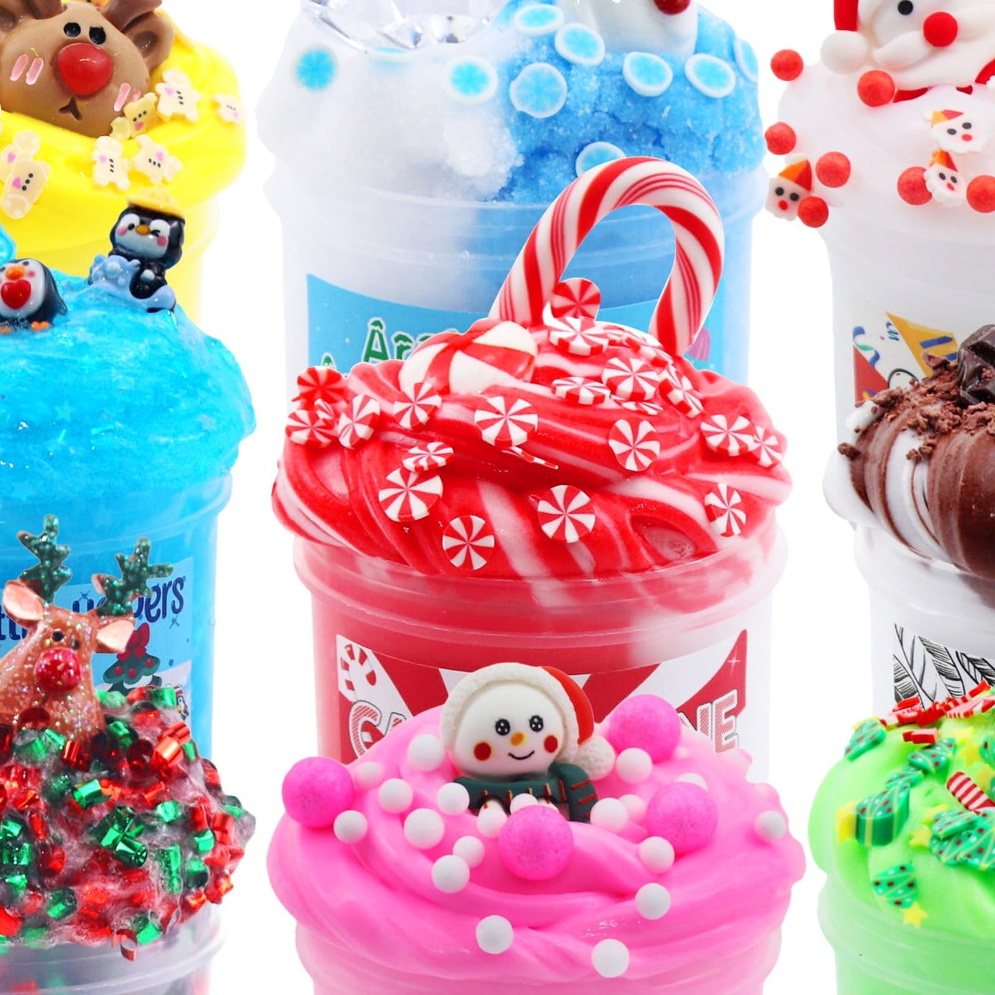 "24 DAY SLIME FUN - This set includes: 12 pots of slime in different colors and over 40 different mix-ins, a wide variety of charms, sprinkles, and clay slices.