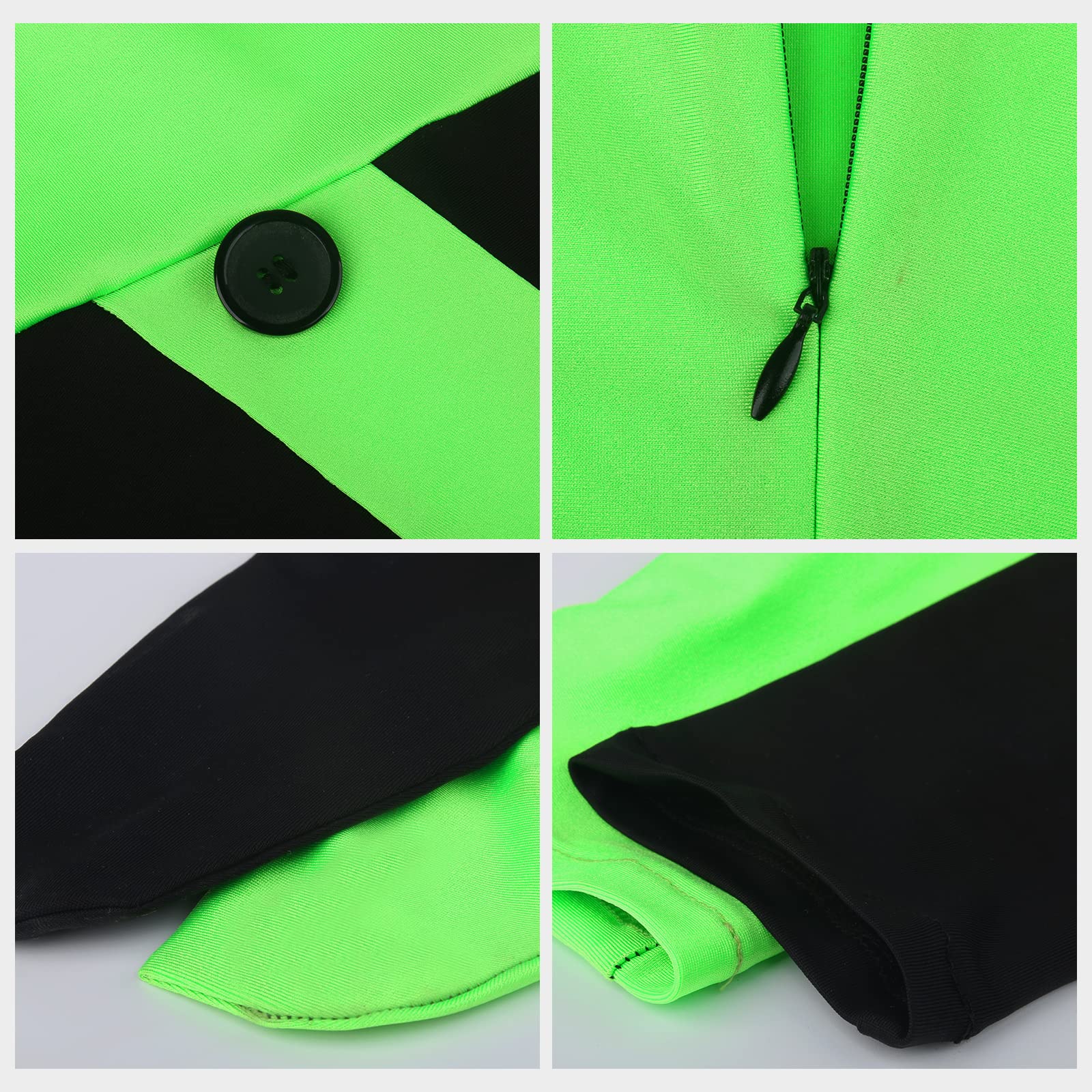 "Anime Super Villain Miss Go Cosplay: It is a green and black stretchy bodysuit suitable for adult women and girls. It has a hidden zipper at the back for easy wear."