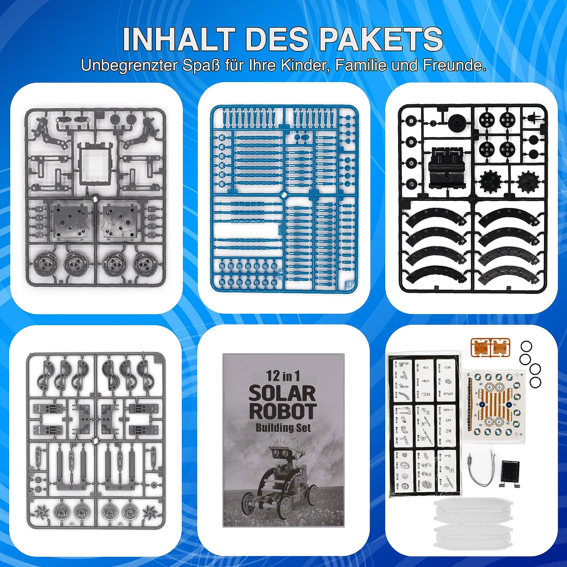 FUNTECH Solar Robot 12 in 1 for kids aged 8 and up, educational toy, robot kit, STEM learning and science kit, gifts for boys and girls (190 pieces)