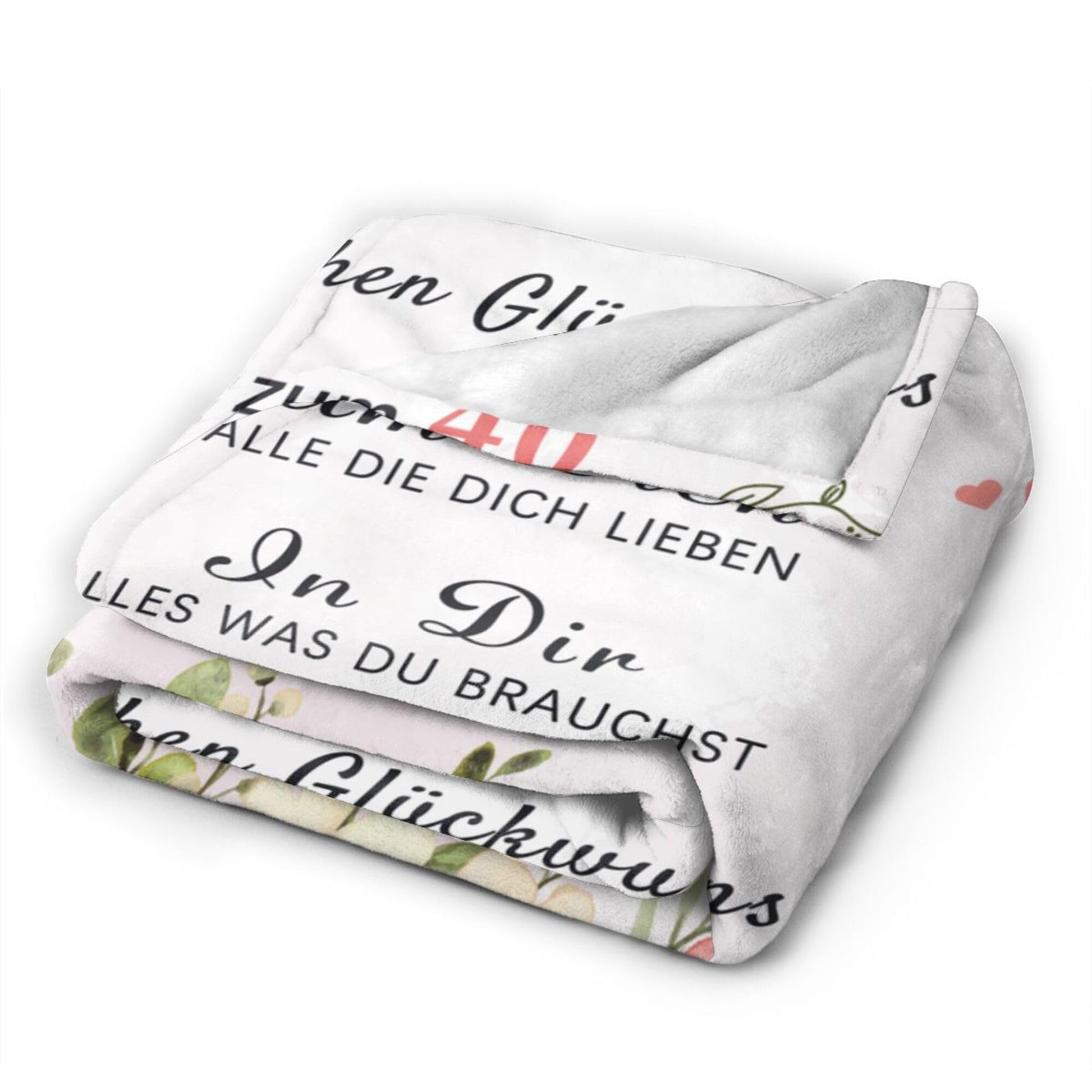 ["Gift for a woman's 40th birthday. A warm and enveloping blanket is the most touching and loving gift. Giving your loved one this blanket is a special gesture. We believe that anyone who receives it will be deeply touched, as if a stream of warmth were flowing through their heart.","Gift ideas for women. This is the best way to surprise your best friend, mother, wife, sisters, colleague, classmate, or aunt on their 40th birthday. The blanket is a unique gift that will remind them every day of how special they are and how much you care for them.","· 🌸【Premium Material & Size】150 x 200 cm, just the right size for watching TV, reading, or chatting on the sofa or bed. Suitable for all seasons and easy to carry, simply roll up, you can take this lightweight throw anywhere. The soft blanket is made of fleece, which is durable, lightweight, cozy, and fluffy. You will feel comfortable, breathable, and relaxed all around.","WASH METHOD: Our blanket can be machine washed at low temperatures and tumble dried. It does not deform easily after washing, is washable, durable, and does not fade. Do not use bleach.","SATISFACTION GUARANTEE: Our blankets are super soft and comfortable, in our shop you will also find other personalized blankets. If you have any questions, we are here for you - we are happy to help and wish you a happy shopping experience!"]