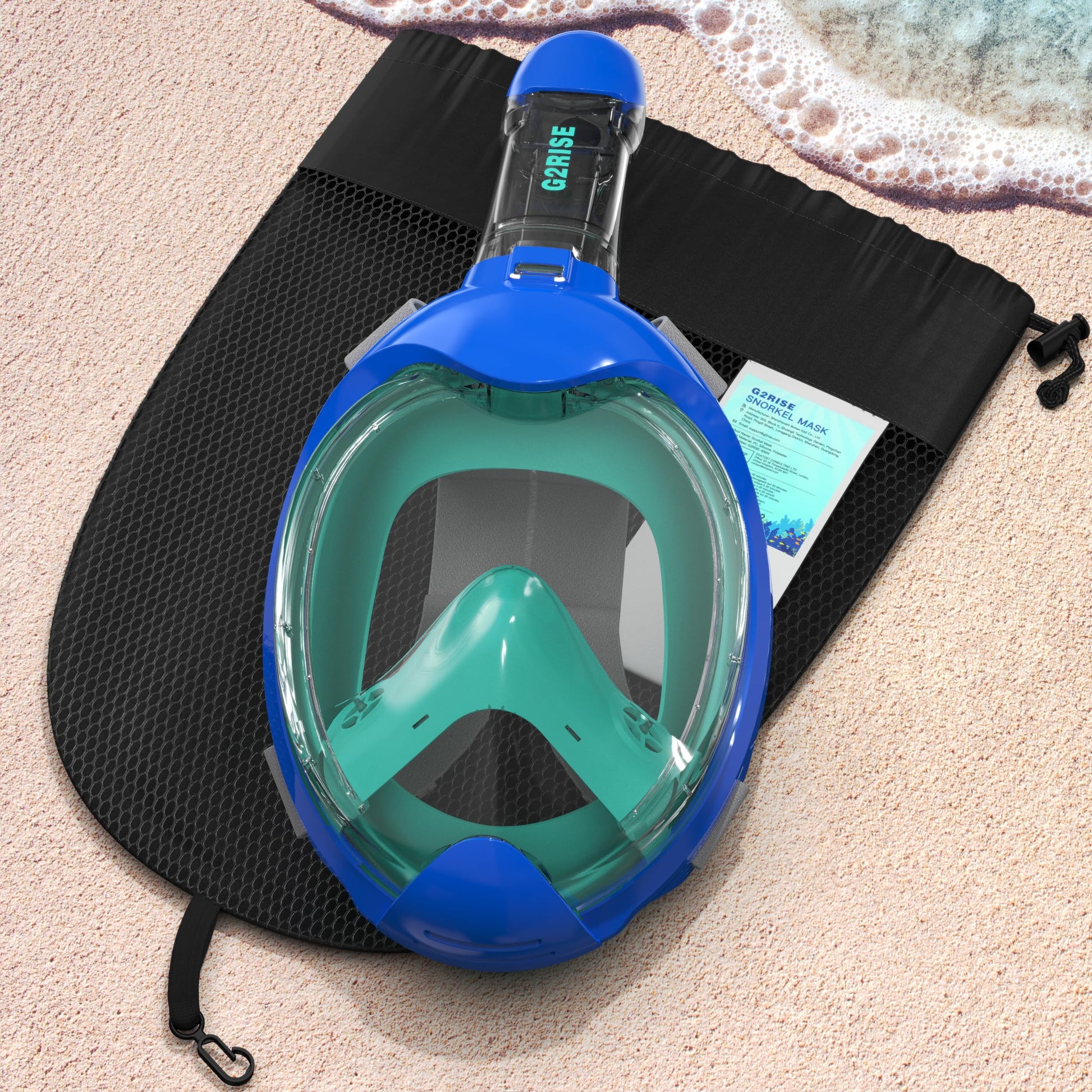 G2RISE® Kids Snorkel Mask, full face diving mask, CO2-safe, anti-fog and dry top snorkel full mask (Blue Green)