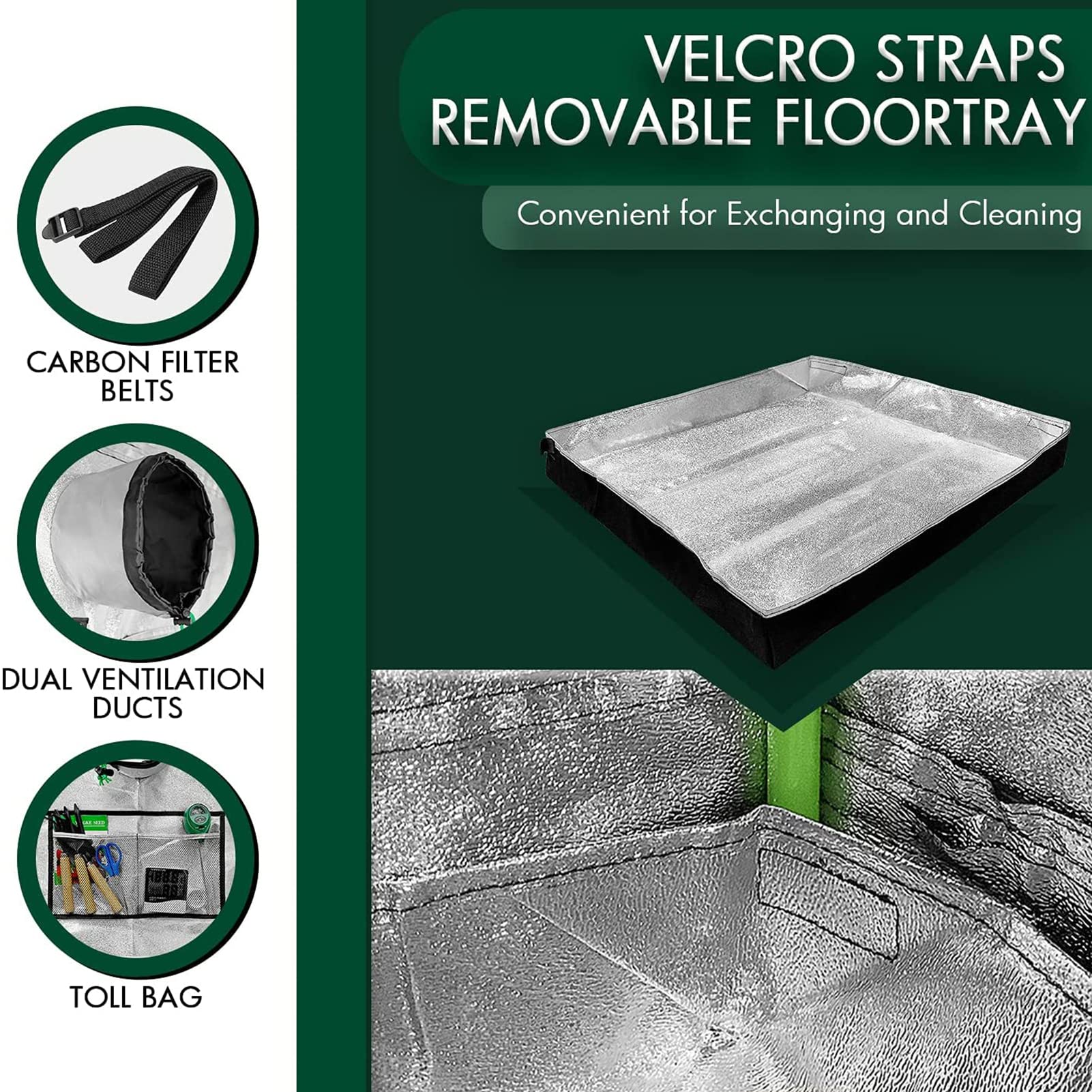 "DOUBLE SECURING ALL LIGHTS: The GA Grow Tent uses high-density 600D Oxford fabric and is lined with 98% reflective silver PET Mylar to retain all the light in the tent. The heavier, shatterproof zipper and double stitches simultaneously protect the tent from light loss.