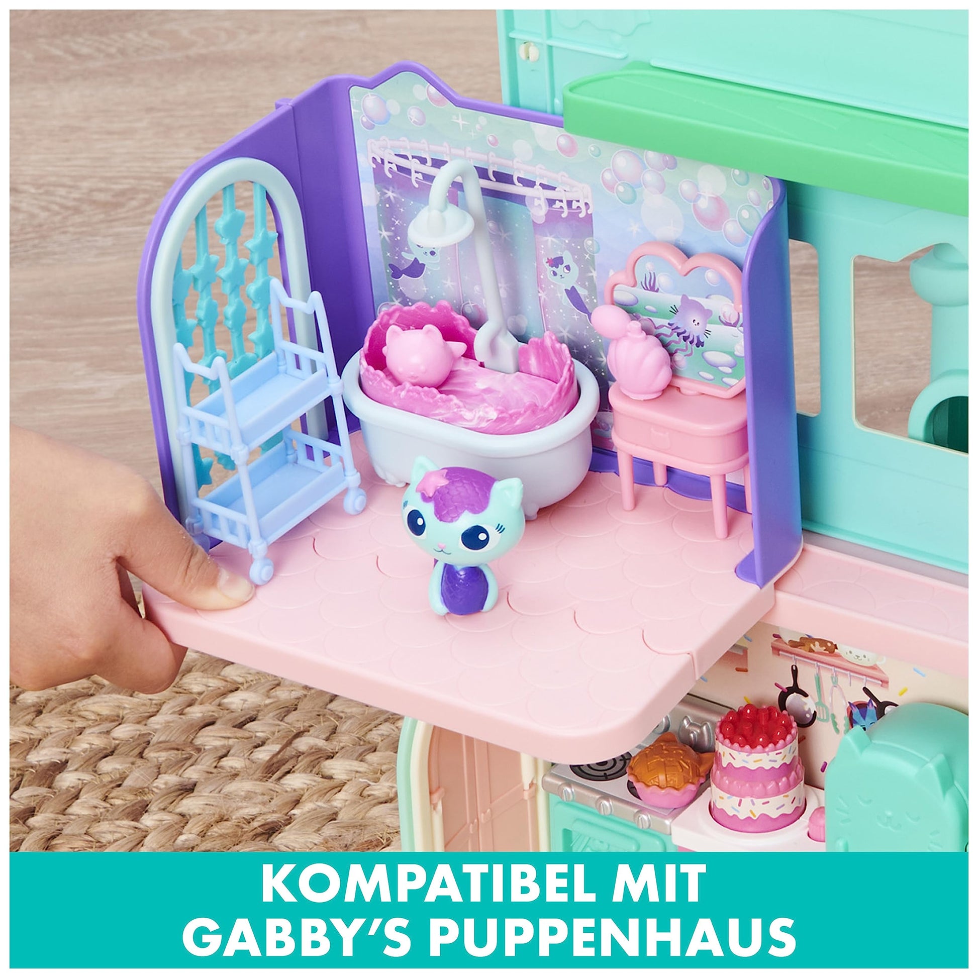 "With the Deluxe Room Prime and Pamper bathroom featuring the MerCat cat figure, kids can authentically recreate adventures from the DreamWorks Animation series Gabby's Dollhouse.