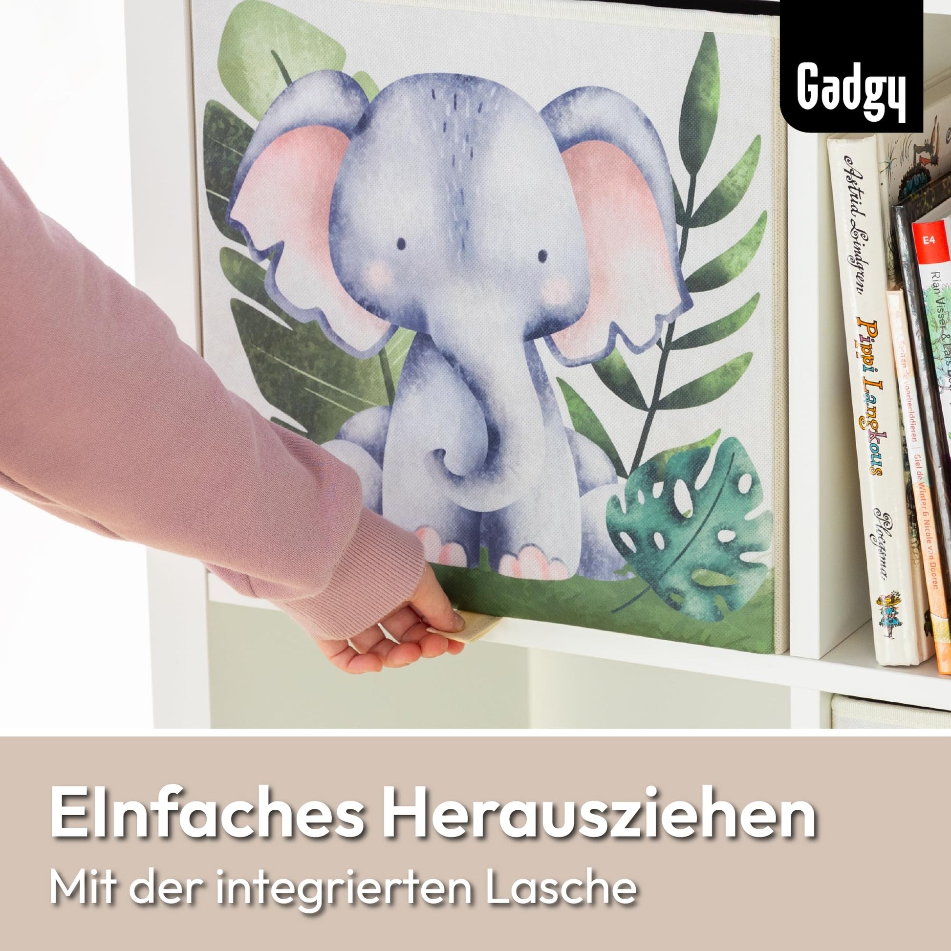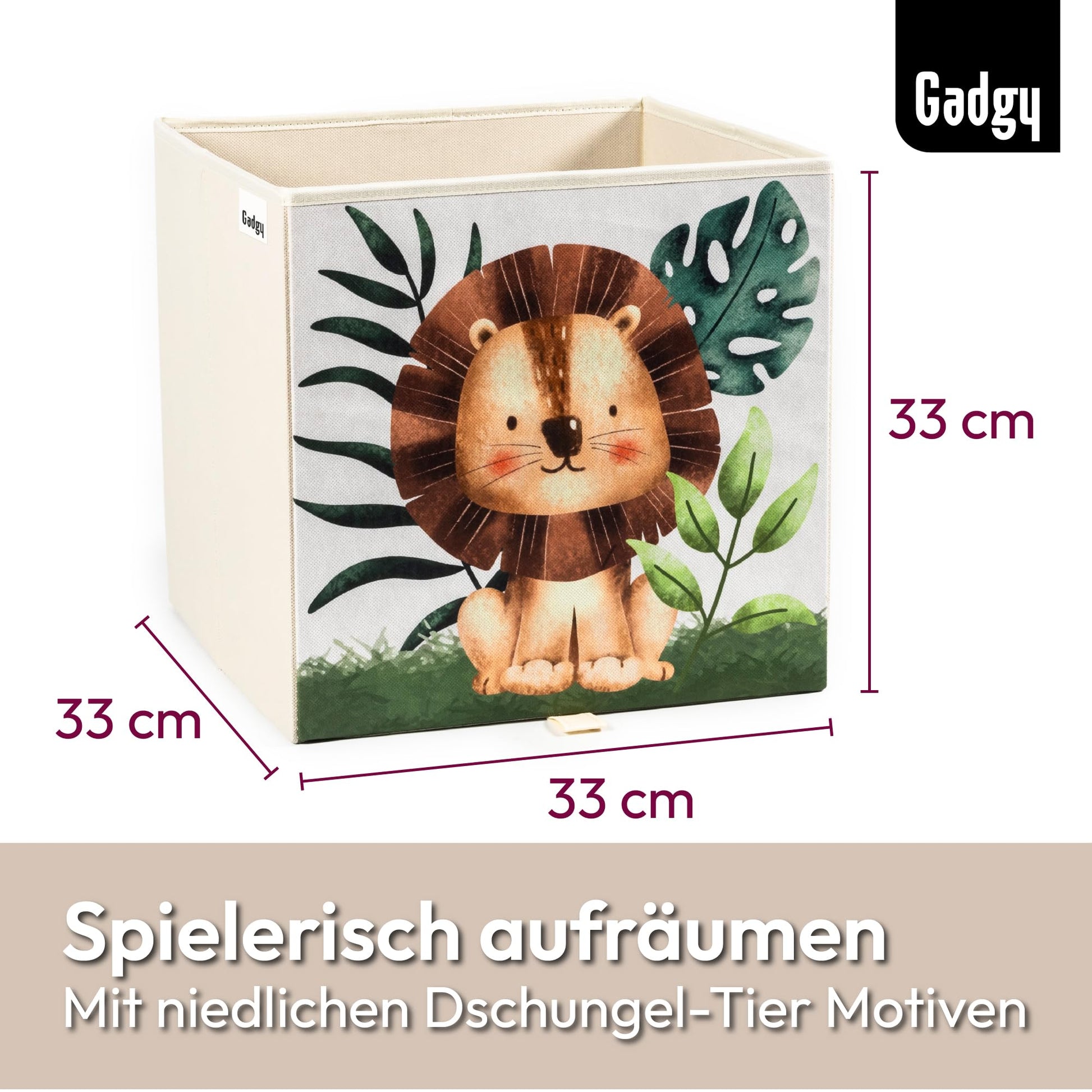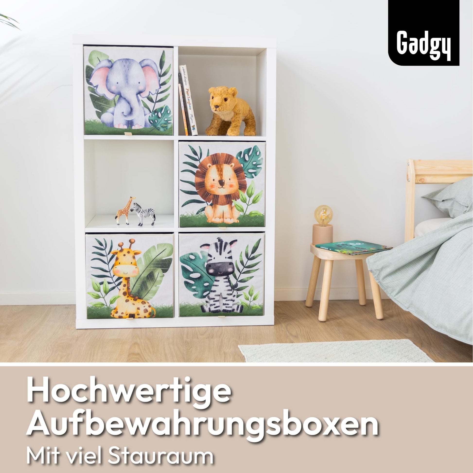 Gadgy Storage Box Kids - Storage Box Kids Room 4 Pack - Compatible with Kallax Kids Boxes - Foldable Kids Storage Boxes 33x33x33 cm - Animal-themed Kids Room Storage Boxes