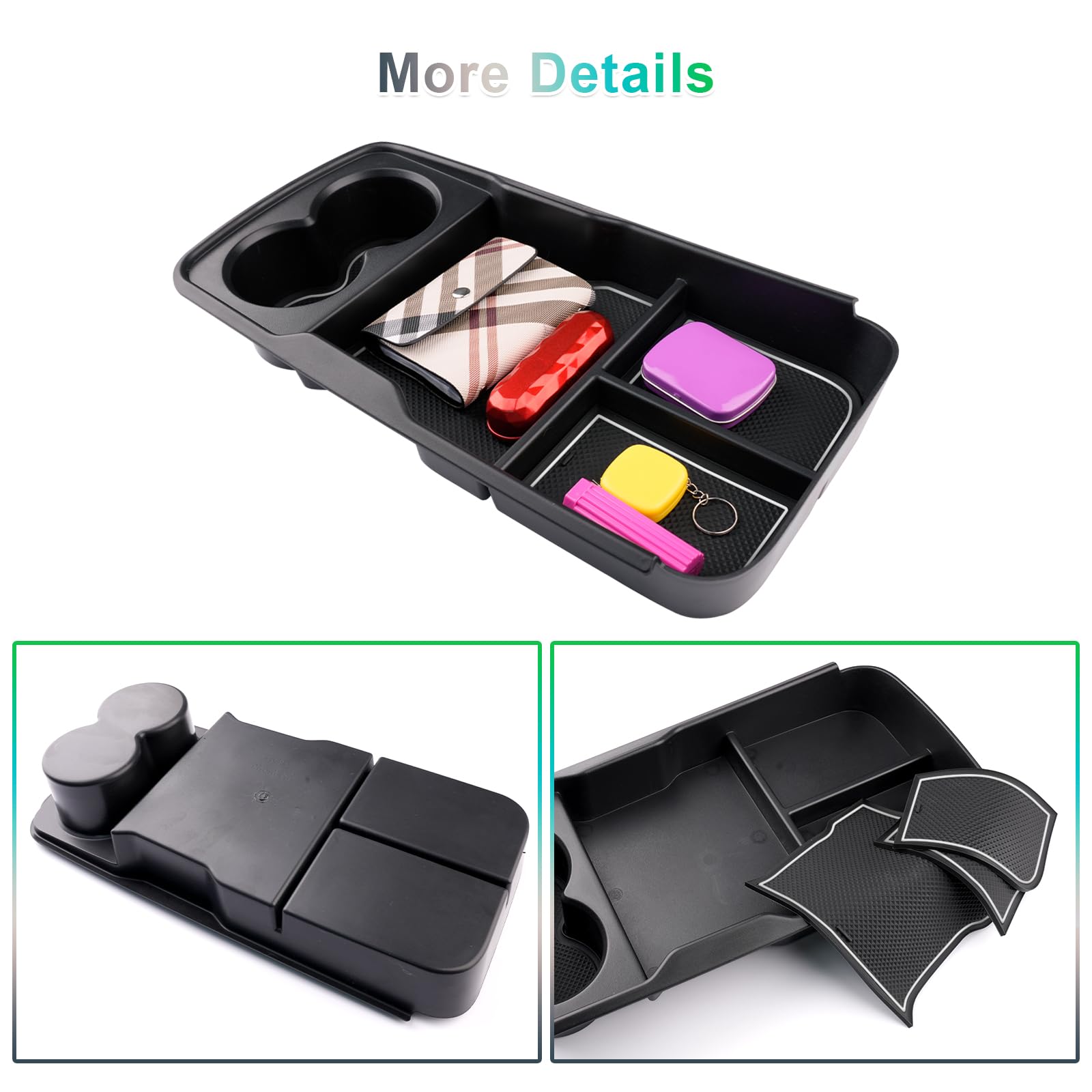 ["Compatible with Kia EV6/ GT/ GT Line 2021 2022 2023 2024 2025","Add additional space to effectively utilize the center console storage, keeping your items organized","Divided into multiple compartments for convenient storage of coins, credit cards, data cables, cell phones, etc.","Made of ABS plastic for extreme durability to withstand the impacts of driving on the road","Quality guarantee. Carefully inspected before delivery. Contact us with any questions. We will respond within 24 hours to ensure your satisfaction."]