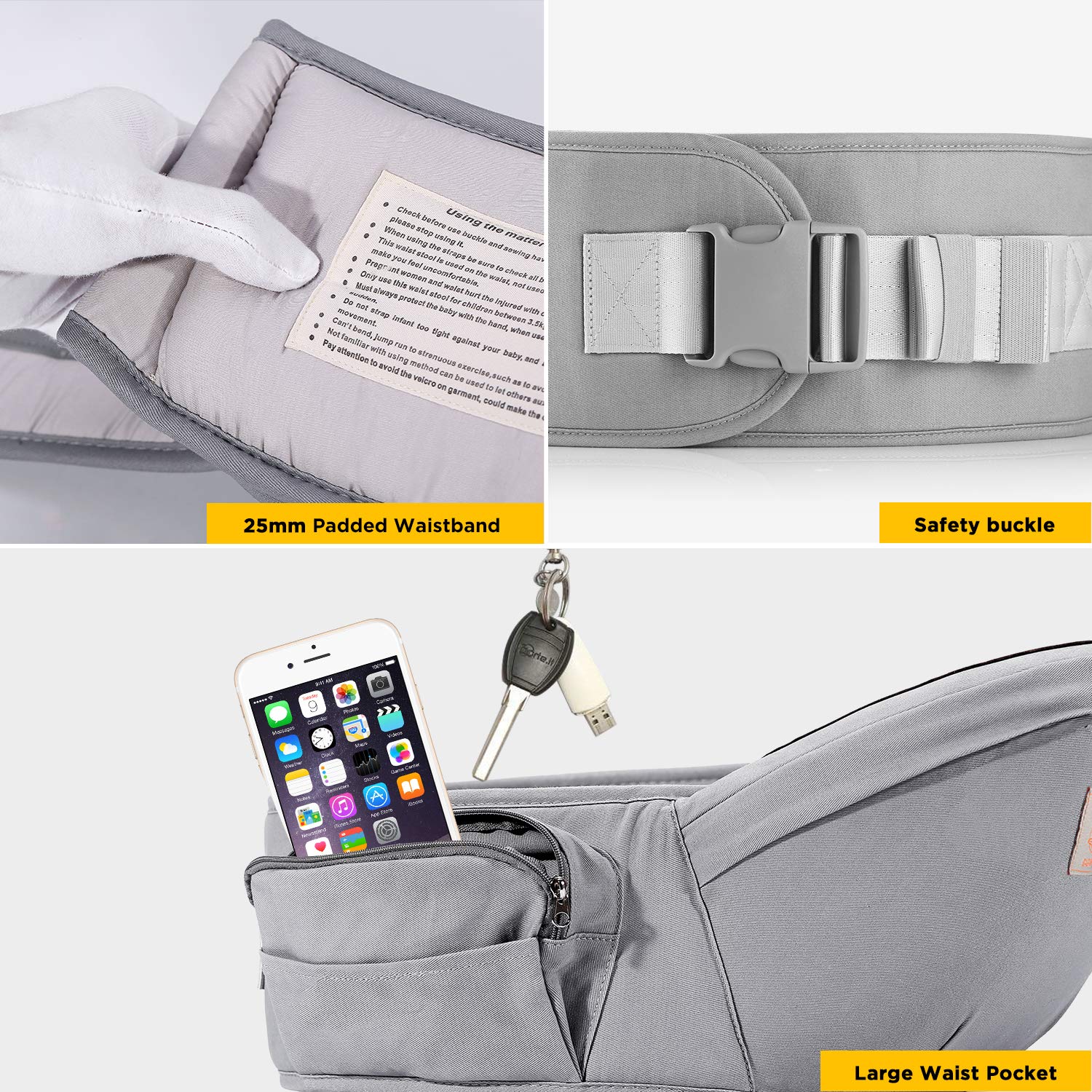 GAGAKU Baby Hip Seat Lightweight Waist Stool 4 Carrying Positions for Children 0-36 Months Infant - Gray