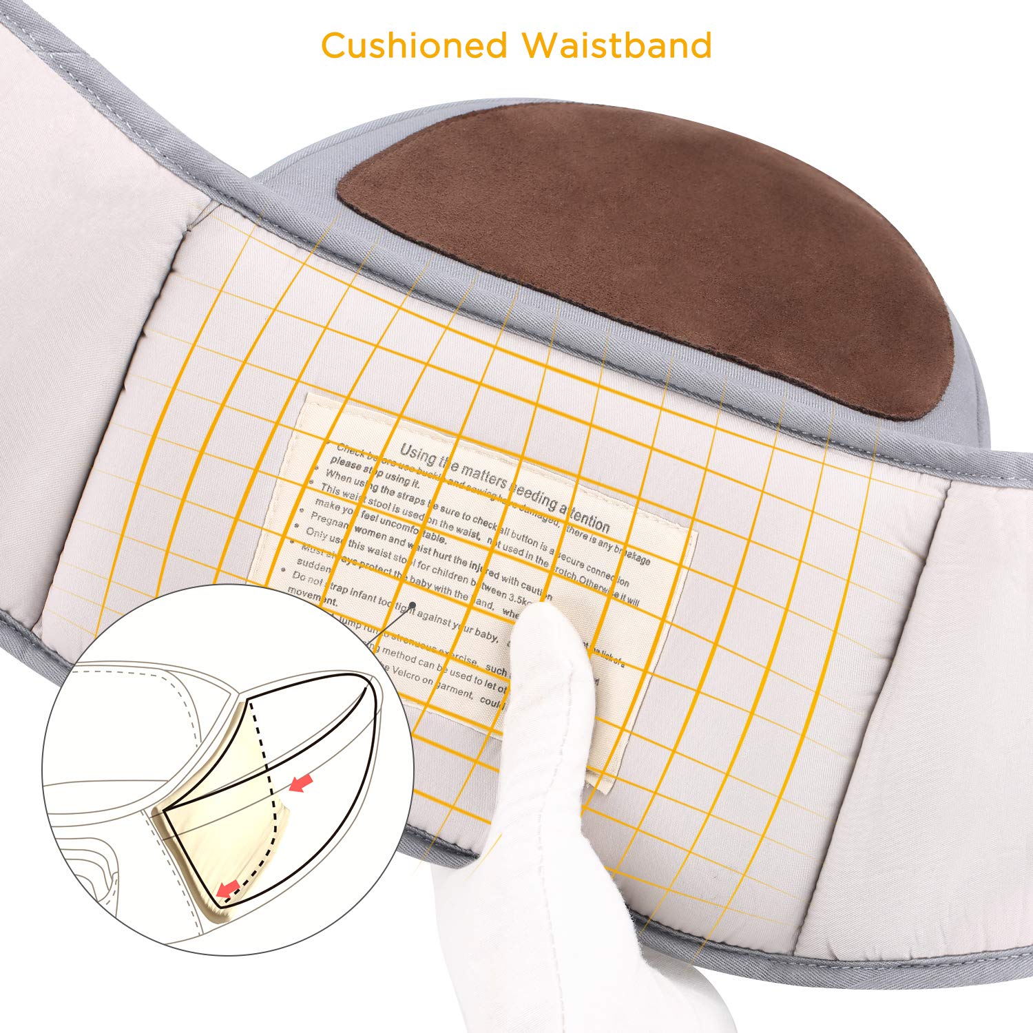 "Suitable for babies from 0-36 months and carrying 0 to 33 pounds (up to 15 kg); Material made of cotton; Inner padding is made of EPP foam, safe and difficult to deform; The 25mm padded waistband is adjustable in length from 67cm to 127cm; The 30° tilted hip seat provides adequate support for the baby's legs, hips, and spine; Velcro fastenings and sturdy buckles double the safety; A zipper pocket on the waist is convenient for placing small accessories;"
