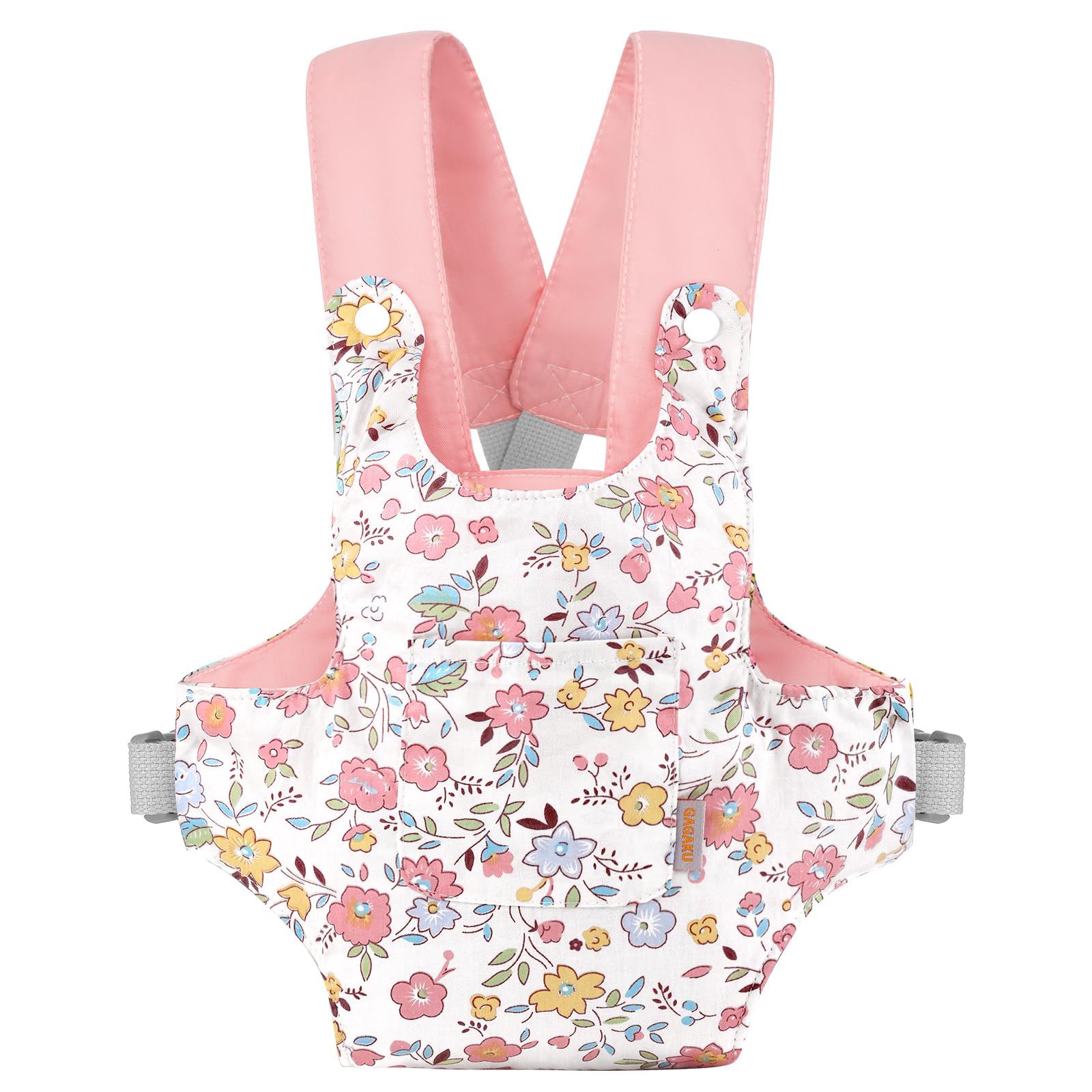 GAGAKU doll carrier for kids, adjustable straps, pink (peach blossom) - doll accessory for carrying dolls on belly.