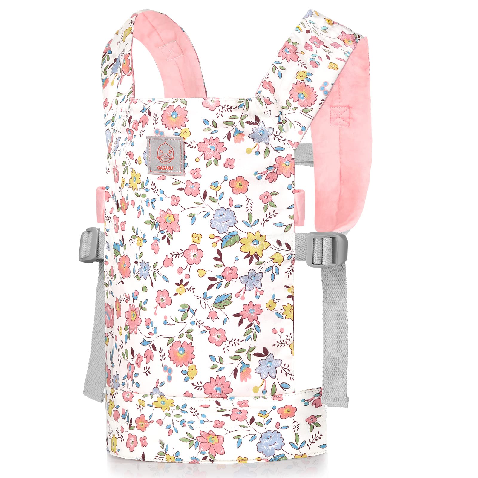 GAGAKU doll carrier for kids, doll front carrier, doll backpack, doll accessory with adjustable straps - Pink - Flower