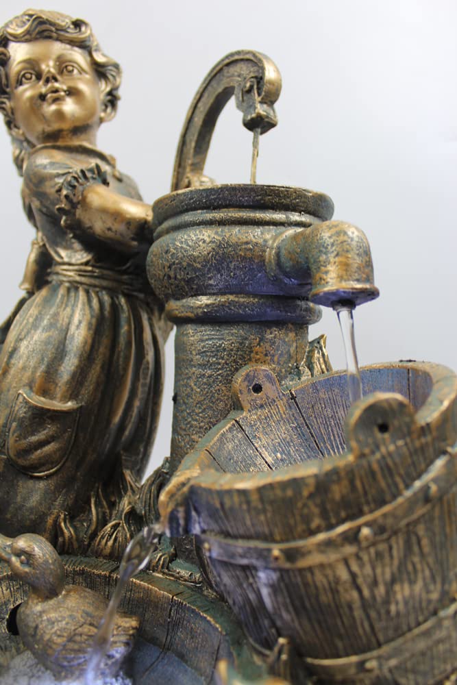 "This beautiful garden fountain is made of polyresin. It is very detailed and looks particularly stunning in the evening hours."