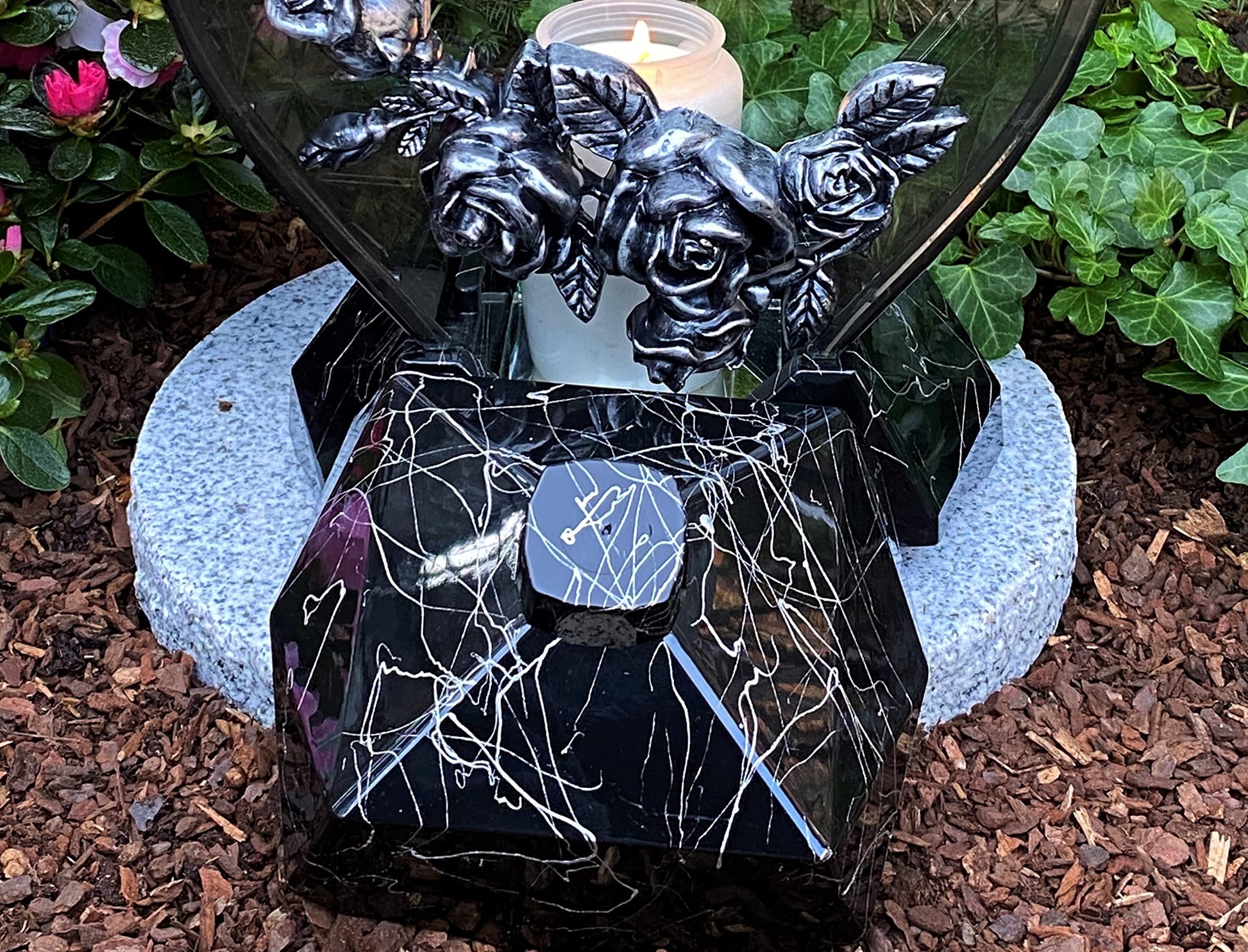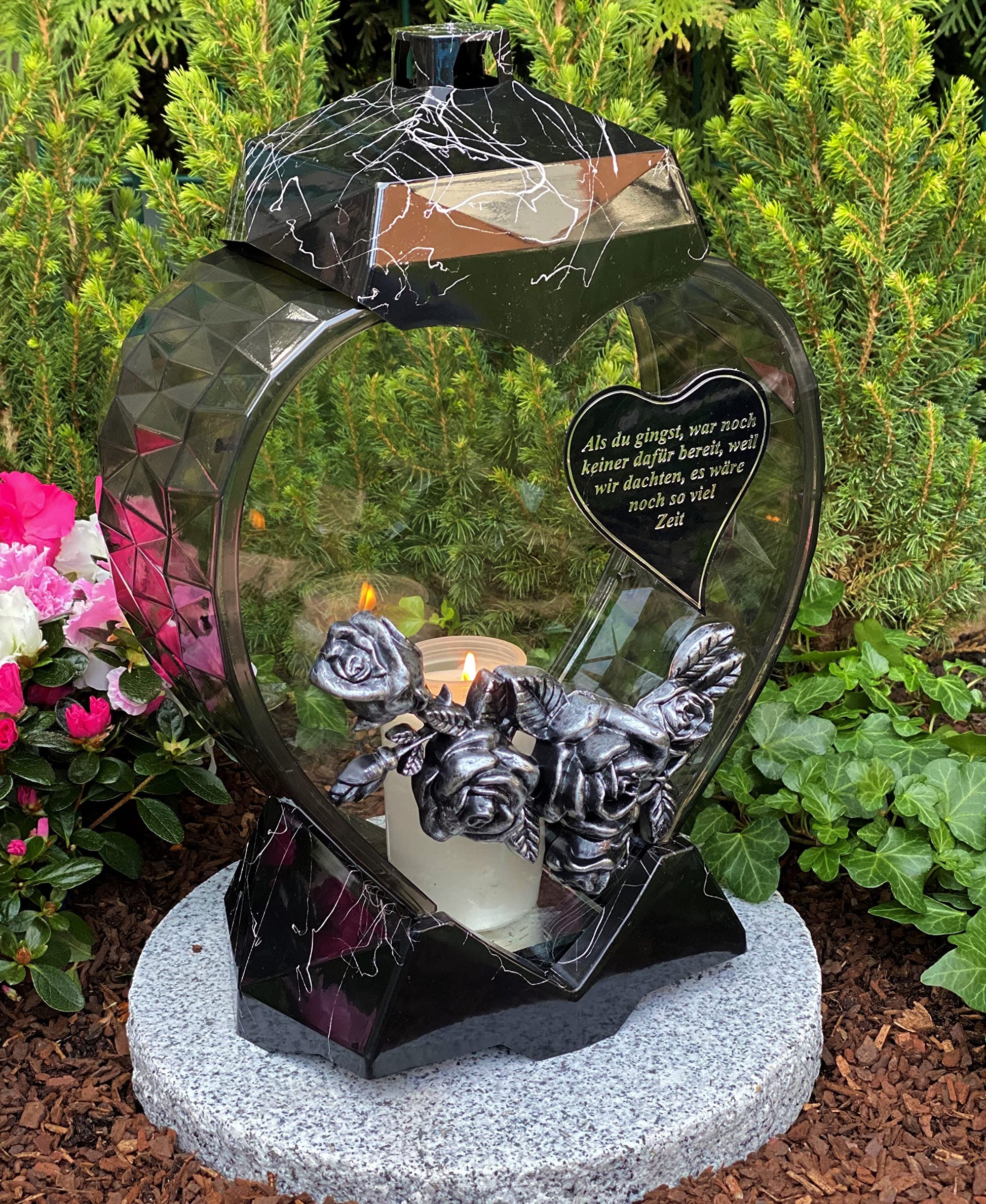 Garden Paradise Handmade Grave Lamp Lantern Heart Shape with inscription NEW - Grave Candle Grave Candle Grave Decoration 33 cm H.! New Model incl. Candle, Black Marble Effect / Hand painted, HEART-3