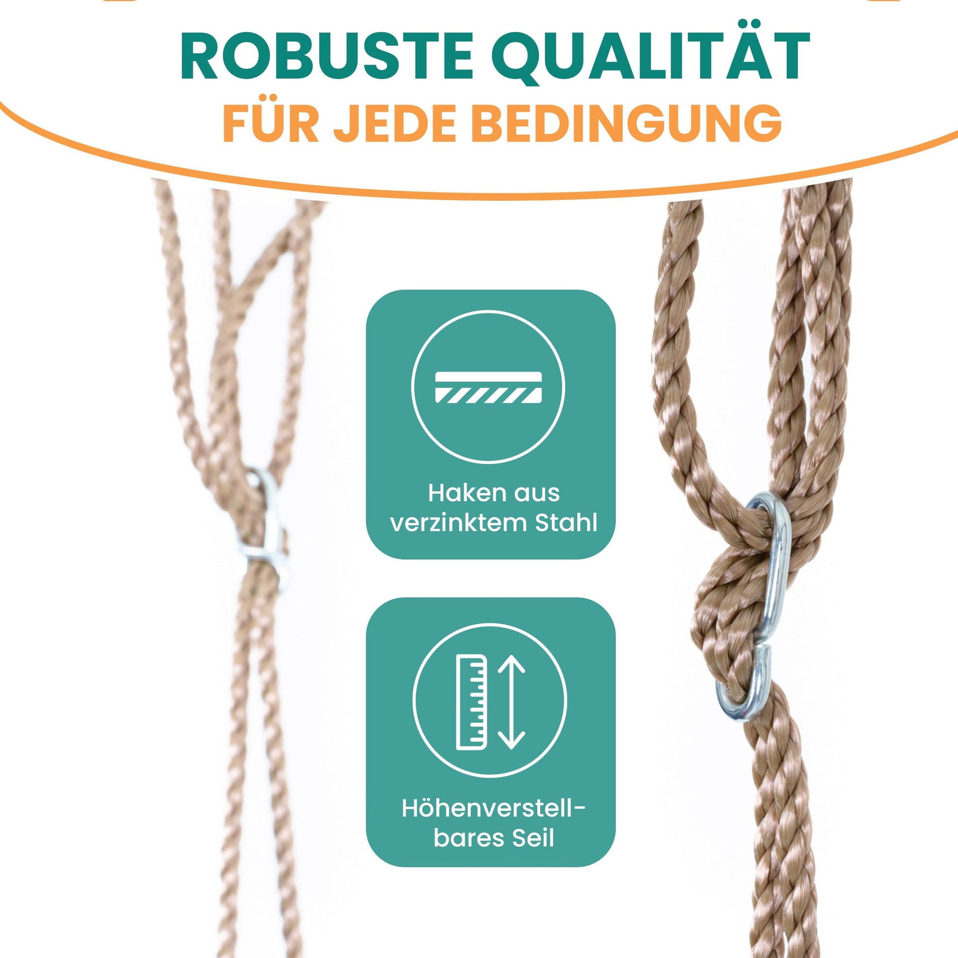 💫 Sturdy Components: Steel rings and hooks ensure high stability, corrosion resistance, and secure installation. The height-adjustable rope made of durable PP material can be flexibly adapted to different mounting options.