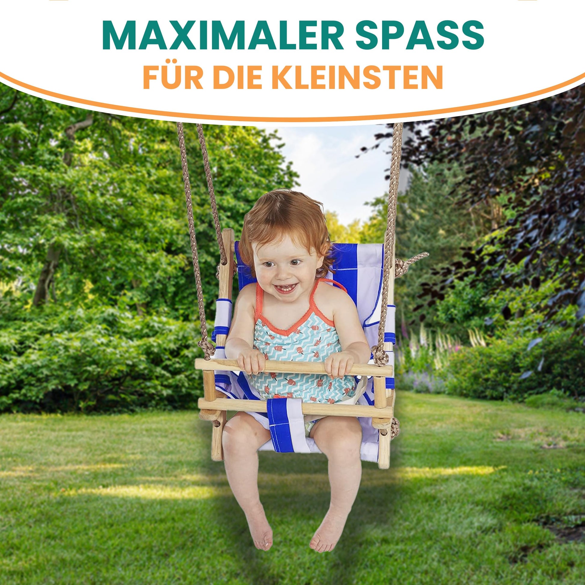 Garden Pirate baby swing made of wood and fabric blue/white 45x30x35 cm for baby toddlers swing seat wooden swing adjustable height weatherproof