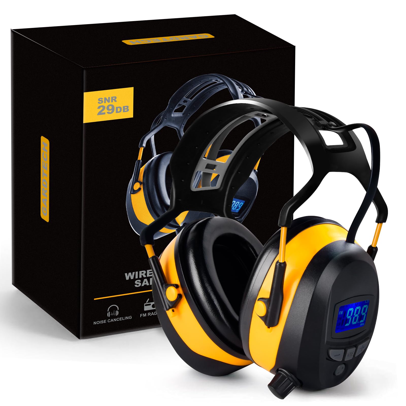 Gardtech ear protection, earmuffs with Radio/Bluetooth/FM, safety ear defenders with NRR 29dB, noise cancelling headphones for men and women, protective headphones for shooting and mowing.