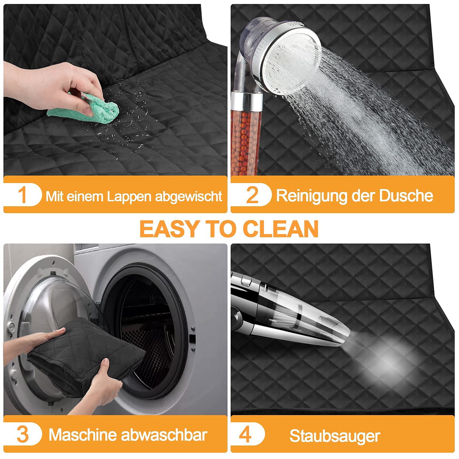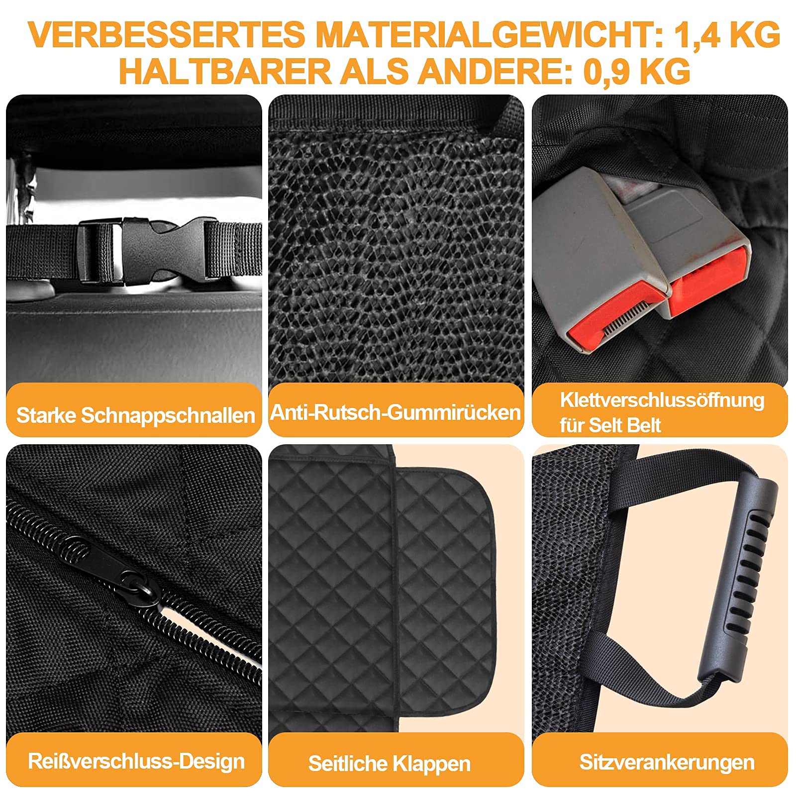 ["【UNIVERSAL& IMPROVED QUALITY】 53 inches x 46 inches universal size for most vehicles. Our improved car seat cover is made of 4 different layers: durable 600D polyester, soft cotton, waterproof polyester, and non-slip backing, making it luxurious, sturdy, waterproof, and non-slip to stay in place. Our product weight is 3.1lbs, which is more durable than most others that are 2lbs.","【FREE DOG SAFETY BELT】 It comes with a backrest car seat cover and a dog safety belt. The FREE dog safety belt for the car is made of high-quality nylon fabric and elastic buffer design to ensure safety while driving and provide a relaxing driving experience for you.","【SIDE FLAPS DESIGN】 The side flaps provide all-round protection for the car leather seat bench. With the side flaps, the cover can protect the ends of your seat from scratches.","【PERFECT FOR DOGS AND KIDS】 Our back seat dog cover provides comfort for your dog and keeps your interior upholstery free from dog scratches, hair, and urine. And the car seat cover is also used for children to protect your back seat from juice, mud. Travel and share your time with your pets and children in peace.","【EASY TO INSTALL & CLEAN】 Just 1 minute for installation with quick-release clips, simply snap the buckle straps around the headrests of your car and tuck into the seat anchors. (Instructions included). Easy to clean with a cleaning cloth or vacuum cleaner, machine washing is also possible."]