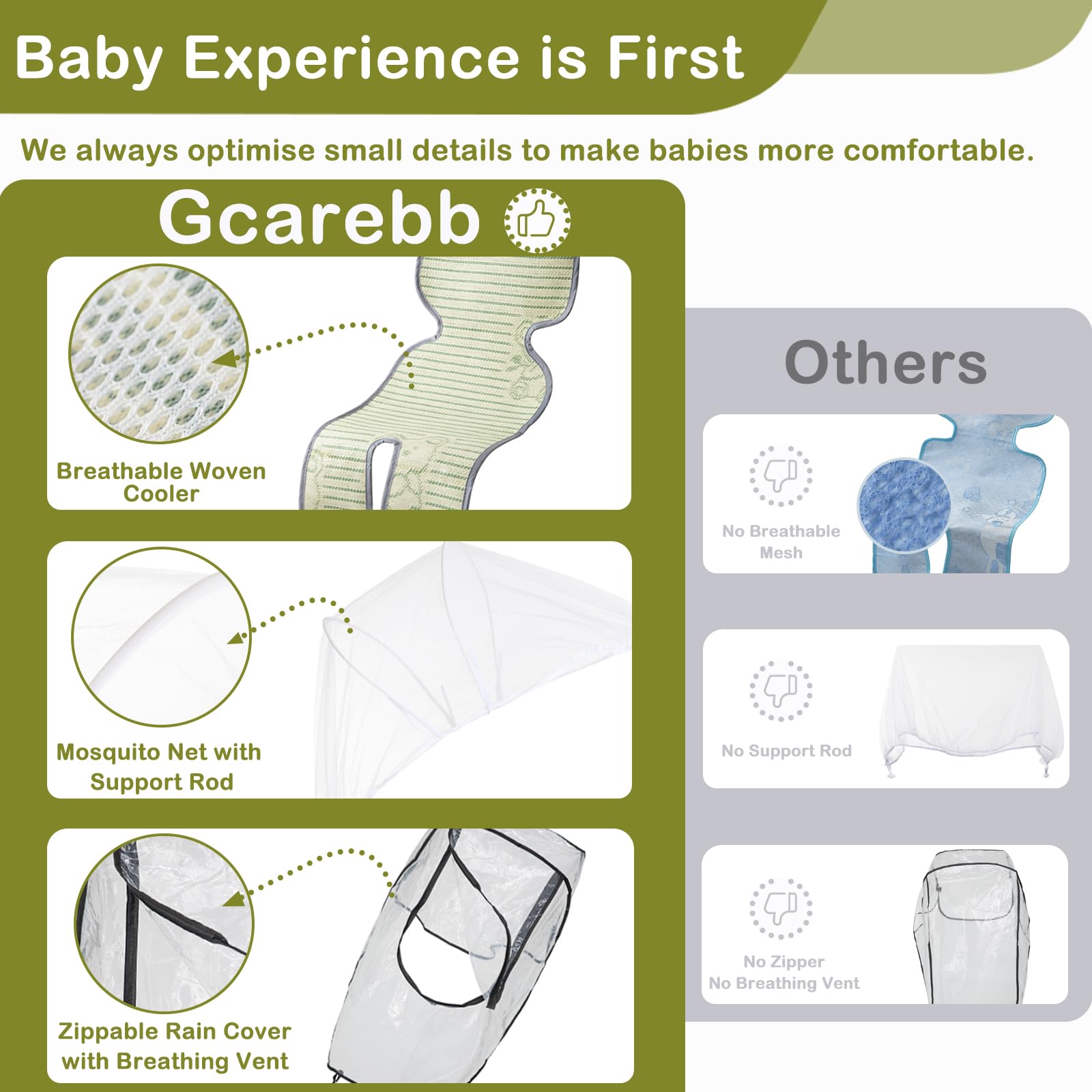 Gcarebb 3 in 1 stroller with car baby seat, easily collapsible with one click, portable complete set with aluminum frame for newborns 0-3 years old.