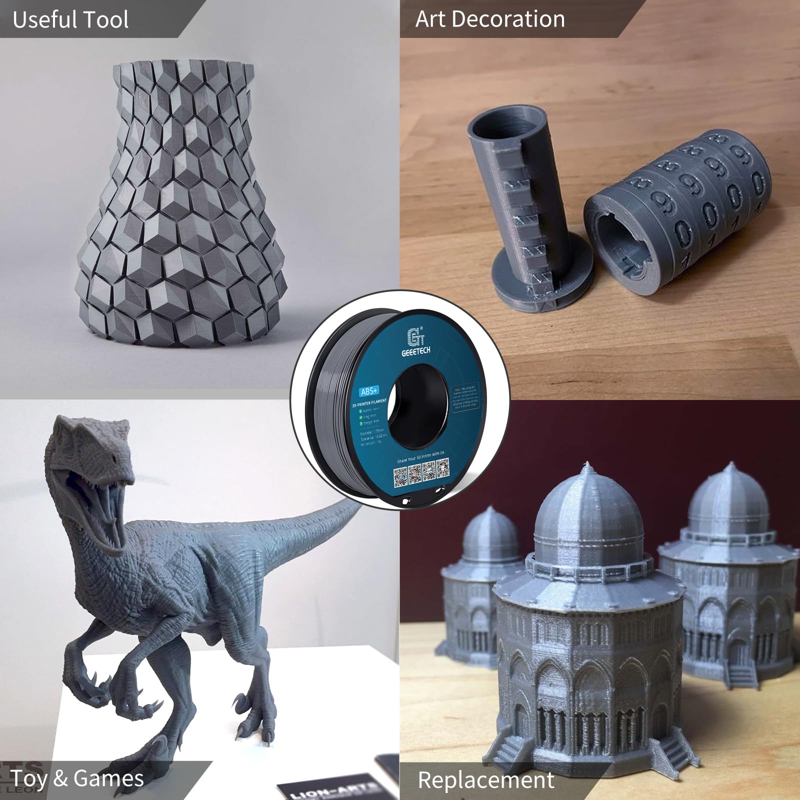 GEEETECH ABS+ Filament 1.75mm, 3D printer filament ABS 1KG spool, dimensional accuracy +/- 0.03mm, Grey